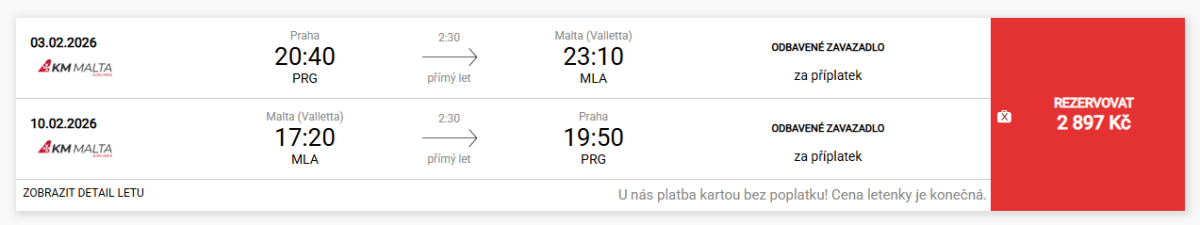 We already mentioned cheap flights from Prague to Malta with KM Malta Airlines in January. The good news is that the good prices are currently also valid for the February and March dates, so you can get return tickets again for under three thousand crowns, specifically for 119 eur.