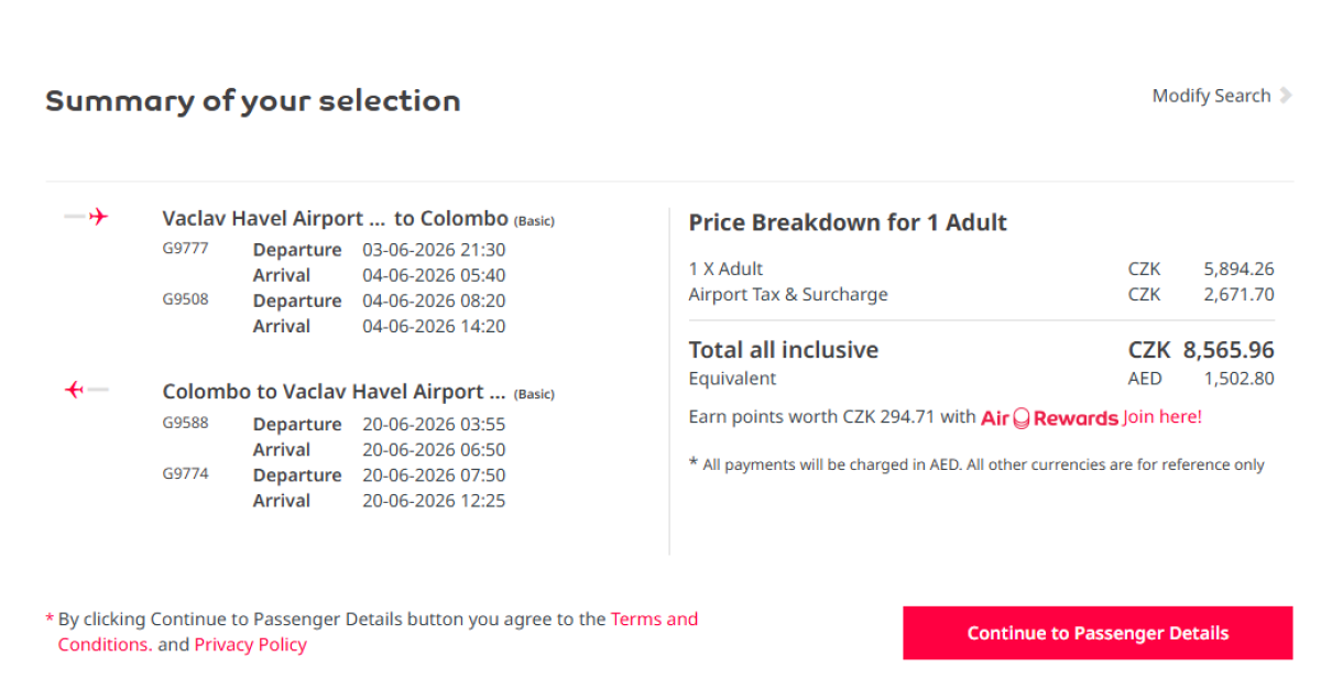 To Sri Lanka from Prague and Vienna with Air Arabia in June