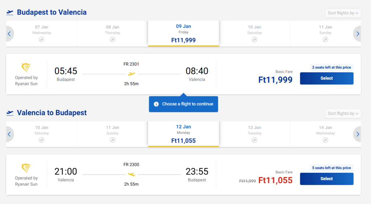 Return tickets from Budapest to Valencia during January for as little as 23 054 huf.