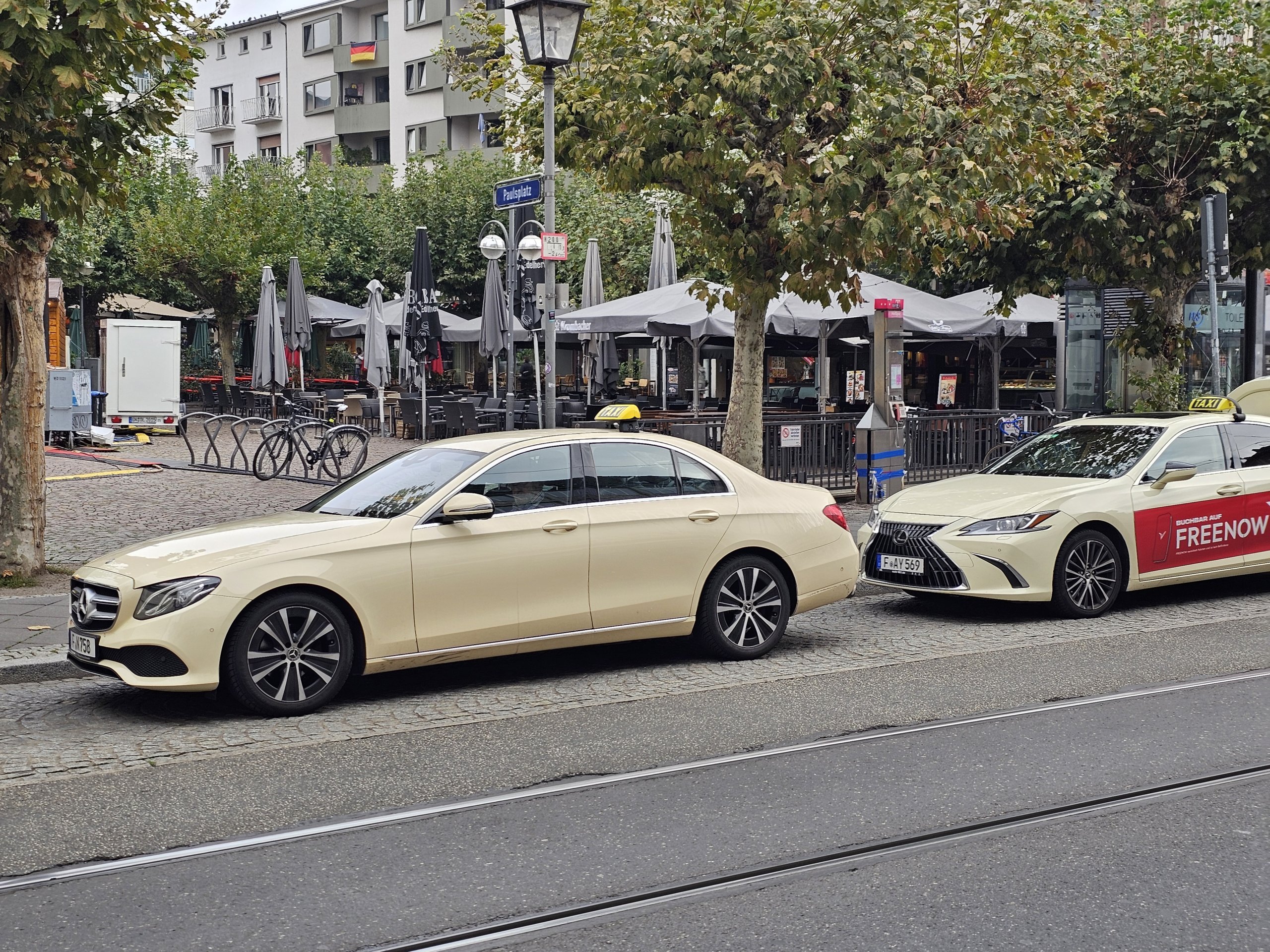 In Frankfurt, you will only encounter conventional taxi services and the mobile apps Uber and Bolt are also available. Within the city centre, you'll come across taxis at all tourist spots and at major stations in large numbers.