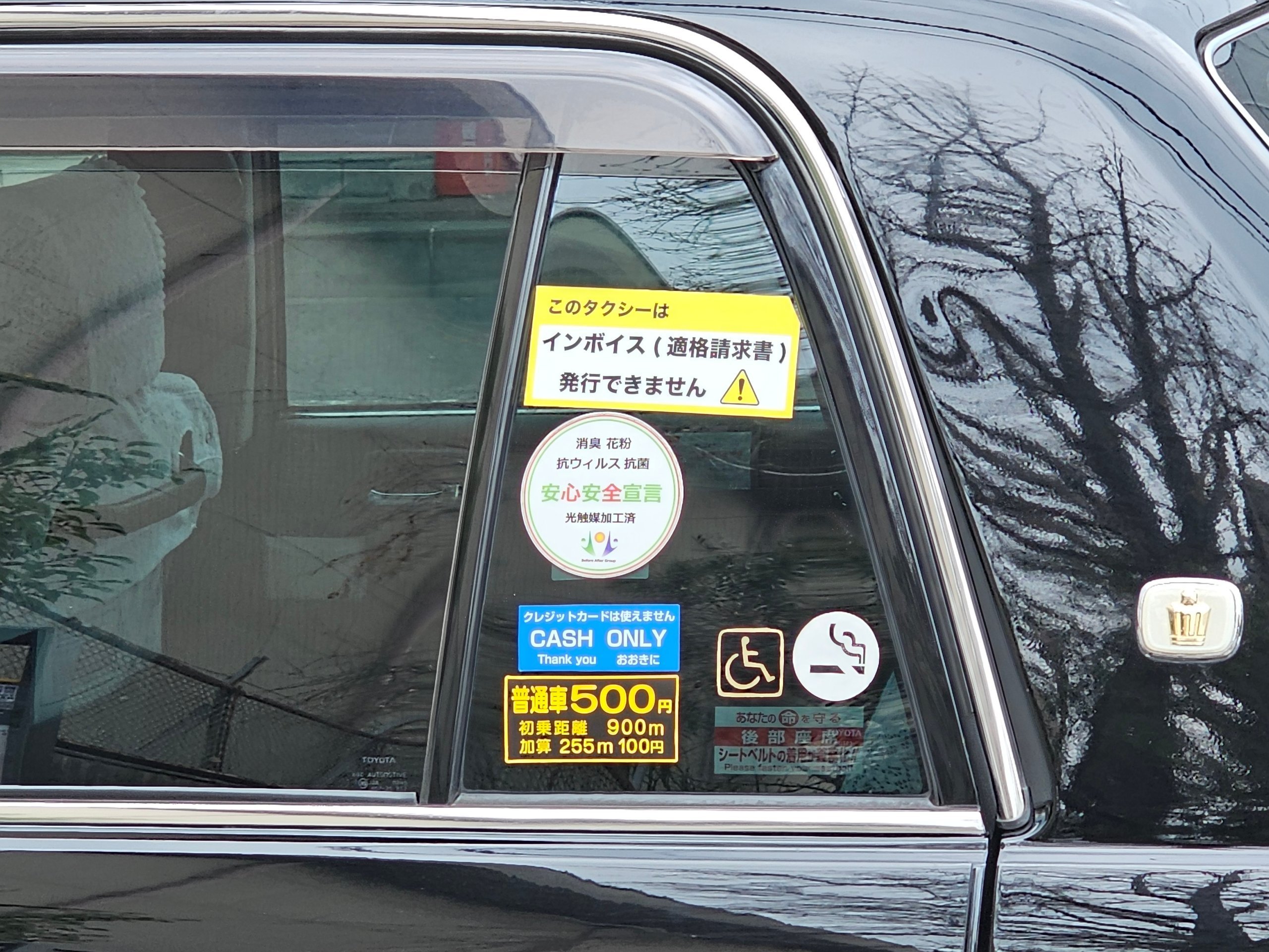 - 80 jpy - every additional 296 metres or 1 minute wait (larger taxis have a slightly higher price)