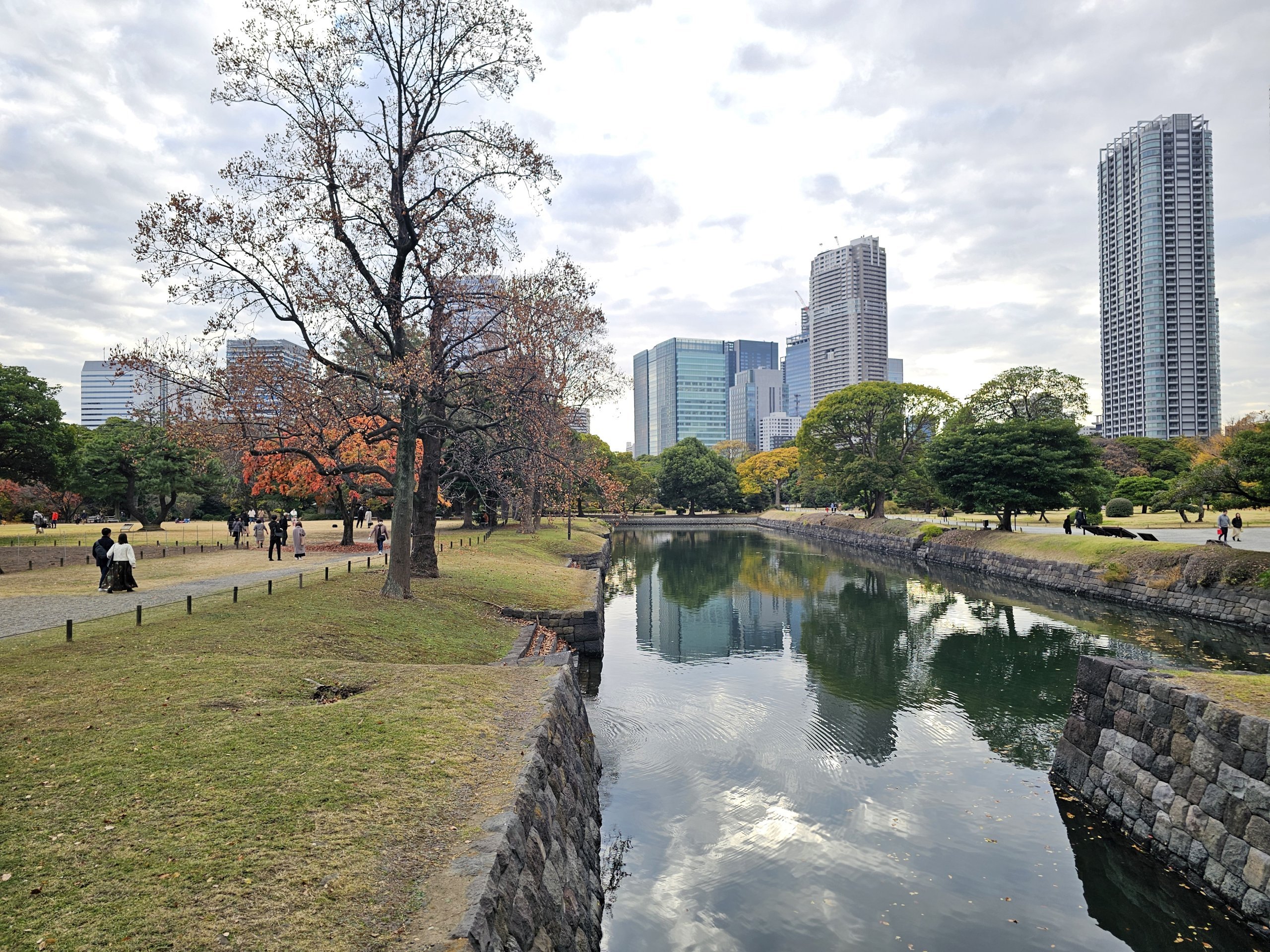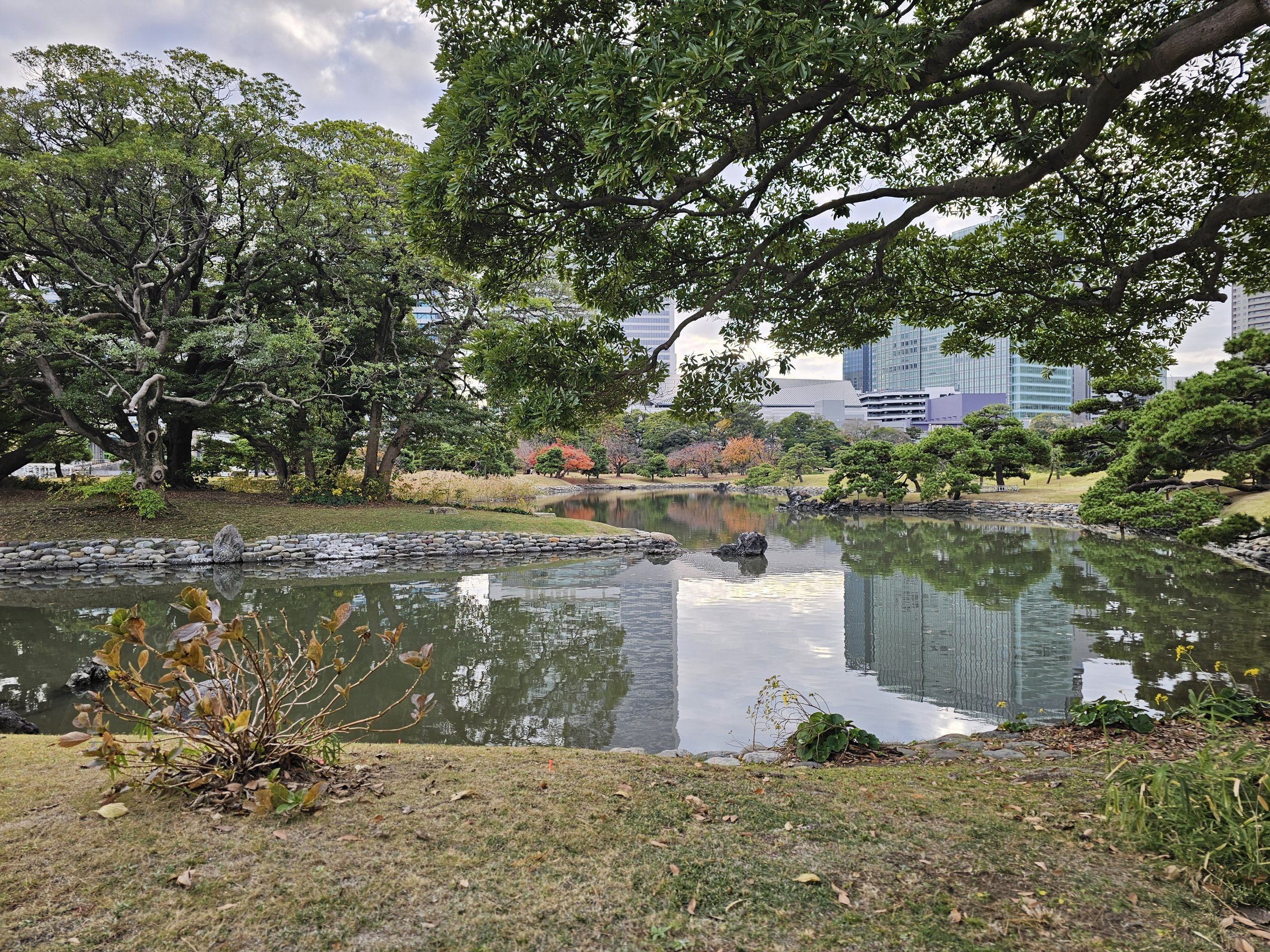 The Hama-rikyu Gardens are among the most beautiful of their kind in Tokyo. This garden contrasts strongly with the surrounding world, i.e. new and old construction.