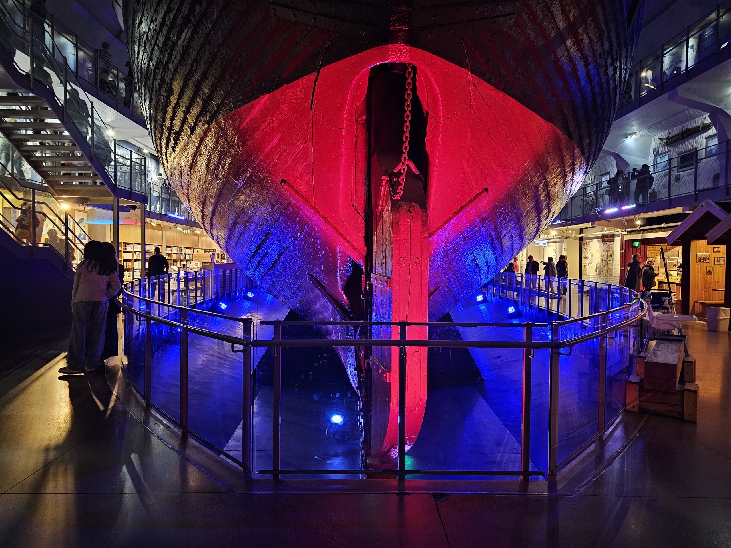 The museum's unmistakable landmark, which has also been adapted to the architectural design of the building and the name of the museum, is the original expedition ship Fram.