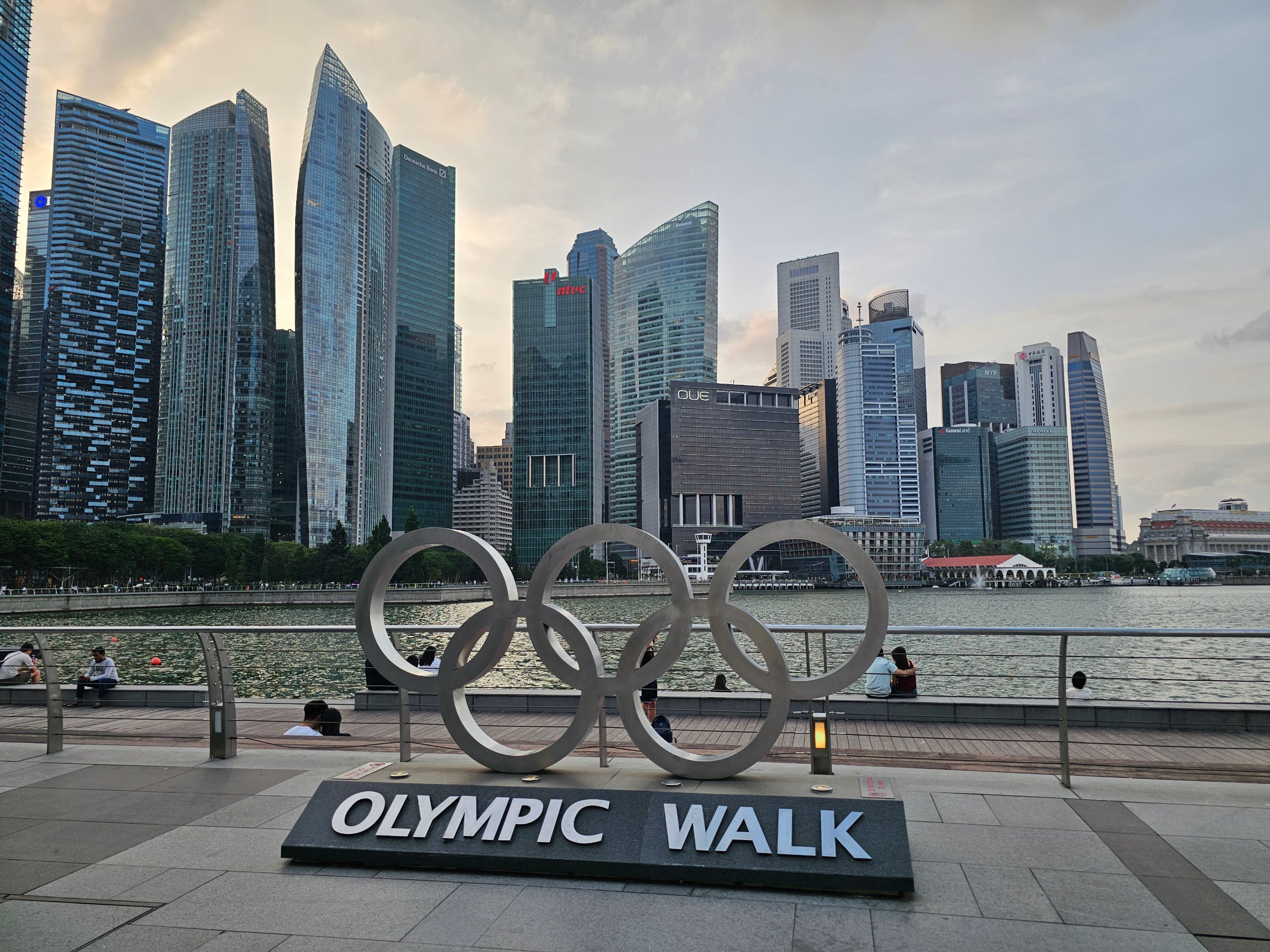 The wide pedestrian promenade with palm trees, part of which is called the Olympic Walk, is one of my favourite places in Singapore.