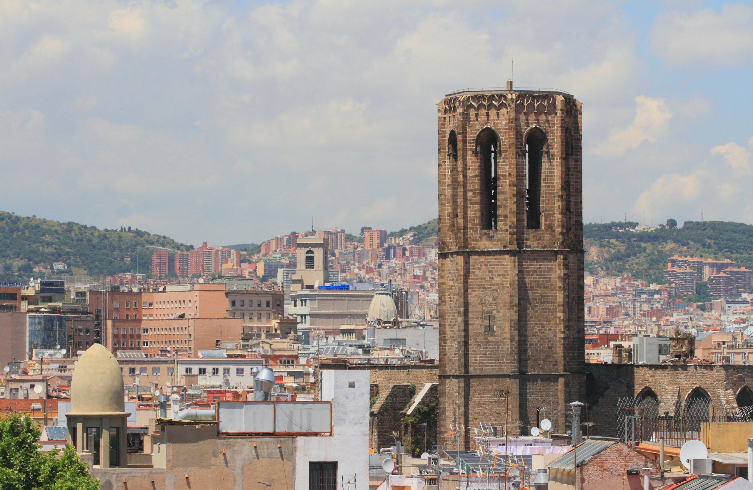 In addition to the façade, the 54-metre high, robust bell tower, built on a rectangular plan, is one of the landmarks of Barcelona's historic centre. The tower's walls are up to 3.5 metres thick.