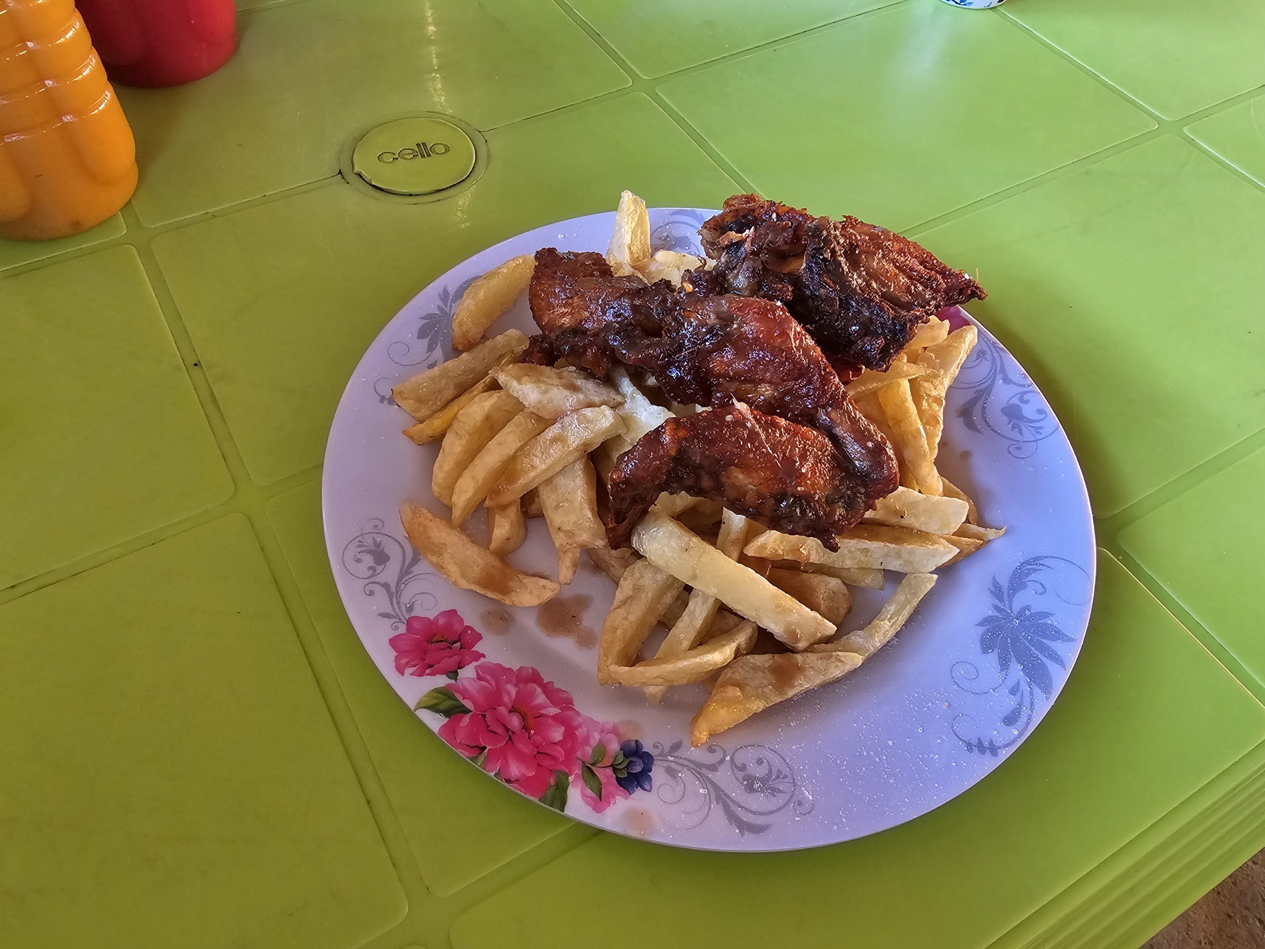- on the menu with fries / potatoes, salad, possibly fried banana around 7 000 tzs to 10 000 tzs