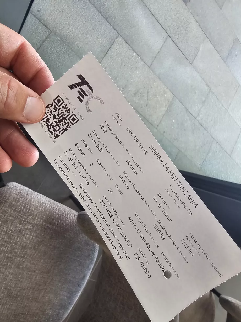 Tickets for modern SGR trains can also be bought through third parties such as 12go.asia, which we like to use when travelling in Asia. However, it didn't work well at all in Tanzania. This website arranges train tickets through a local middleman, but even after multiple urgings, he did not send the ticket and I had to buy a new ticket at the station.