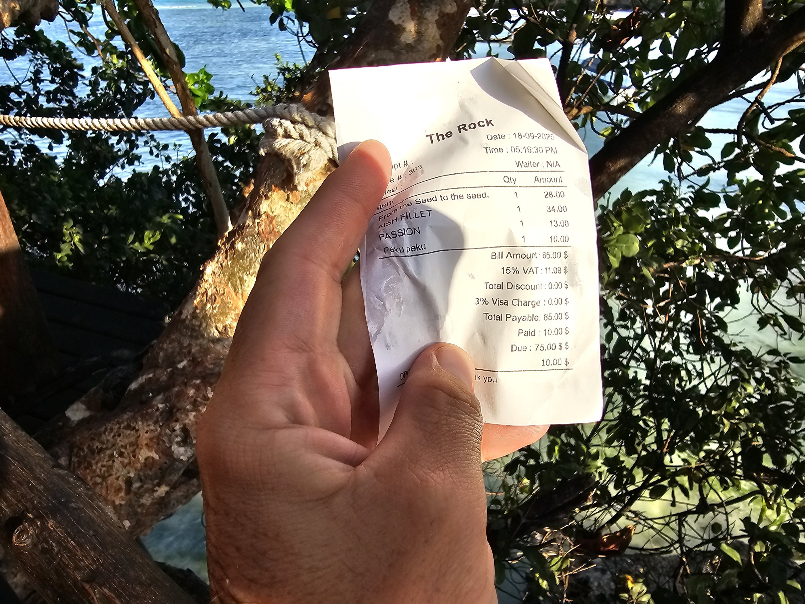 I recommend wearing classic beach shoes - i.e. flip flops or slippers. You can't board the boat with dry feet and even if you walk on the walkway during low tide, a wave can come in. Flip flops are definitely the most practical footwear for visiting the restaurant!