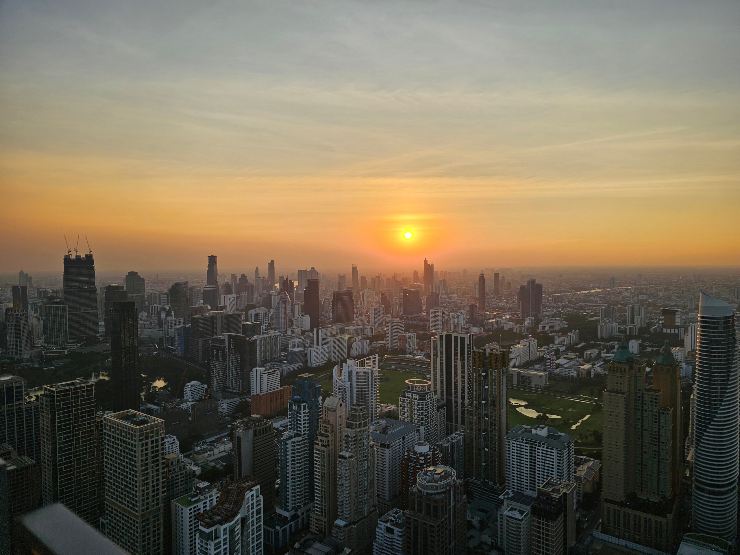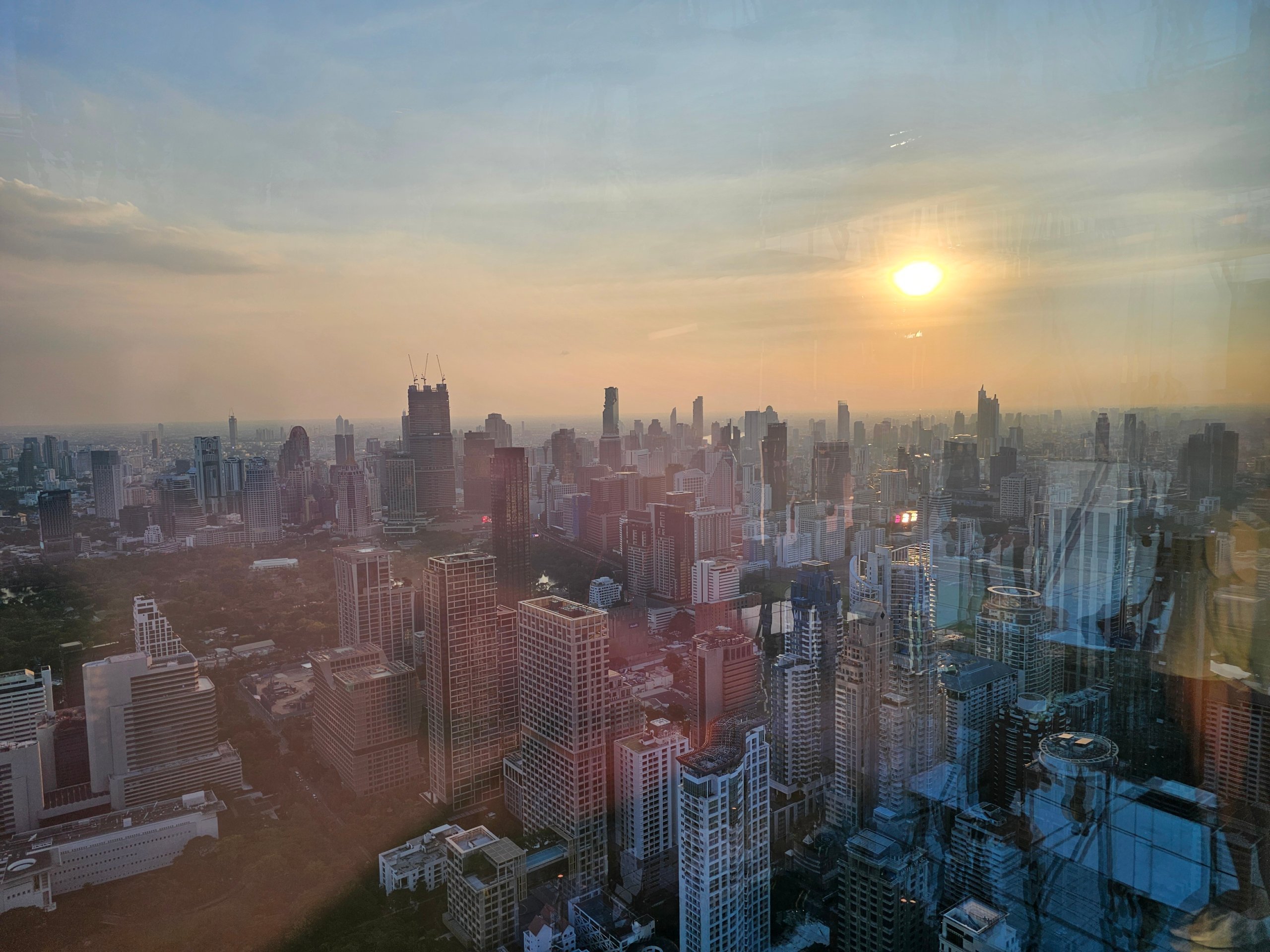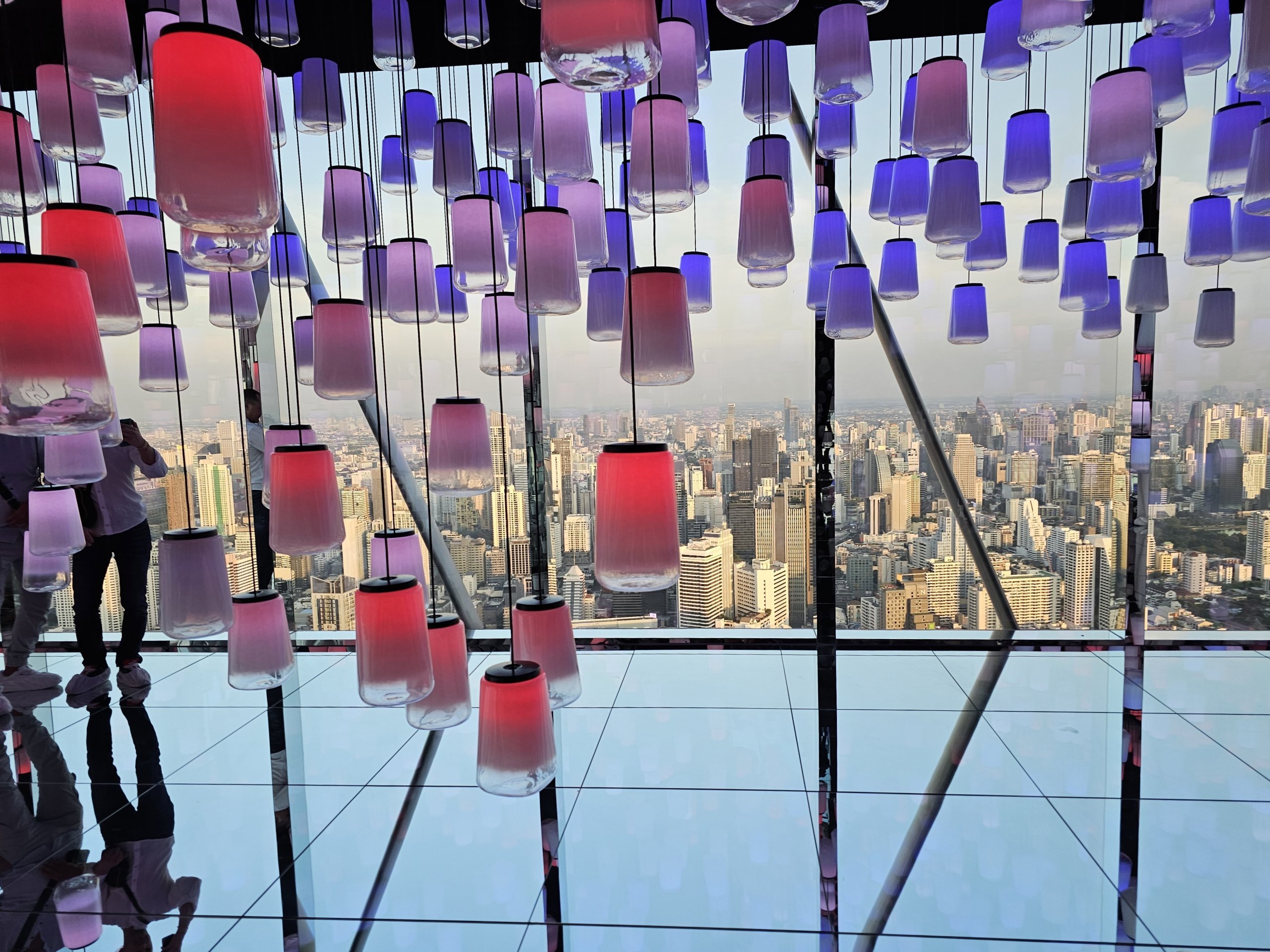 The Chao Praya River or the historic centre are quite far from here and a better view of them is from the Mahanakhon viewpoint.