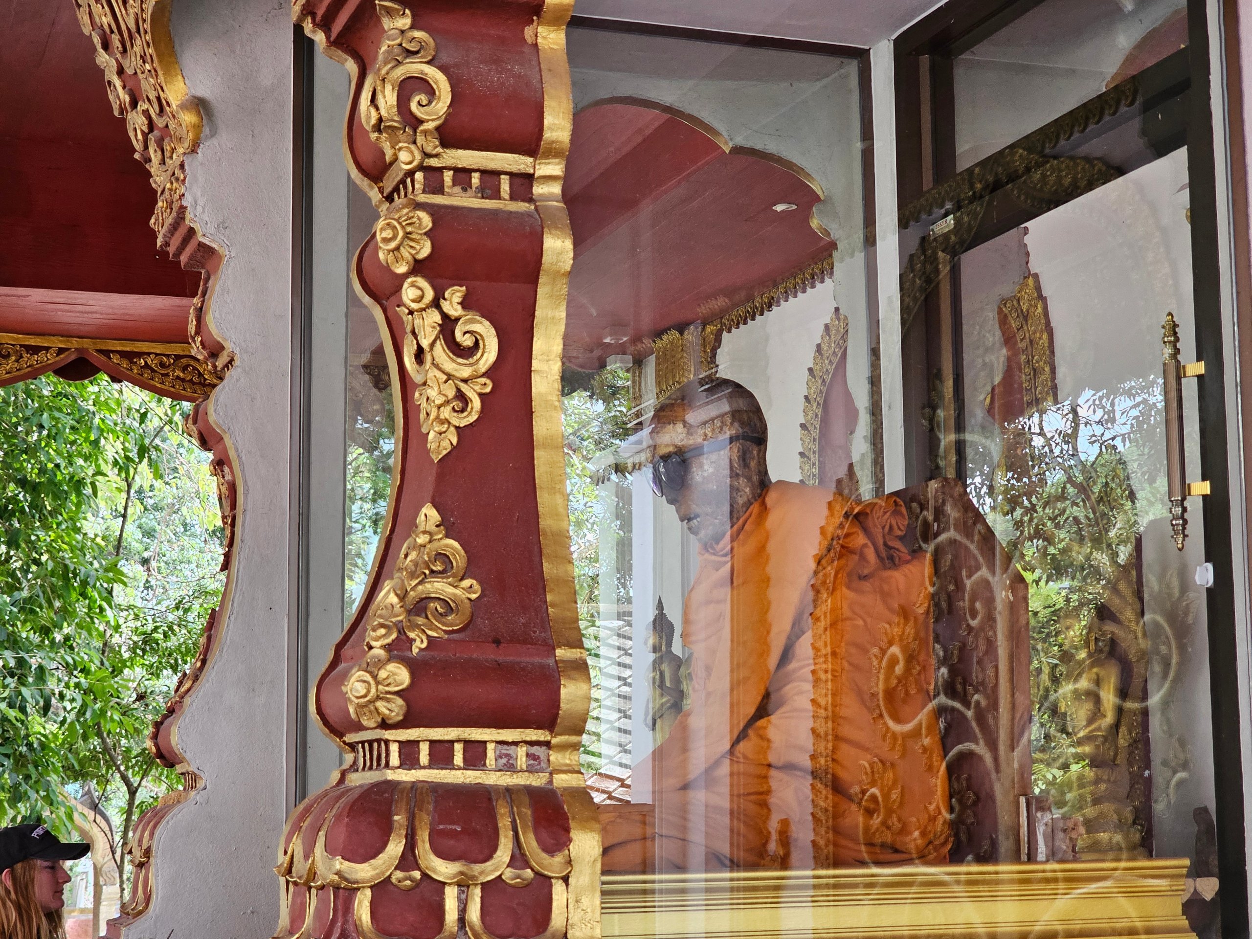 Inside is the mummified body of monk Luang Pho Daeng, who died in a meditation position - and is still displayed in a glass box.