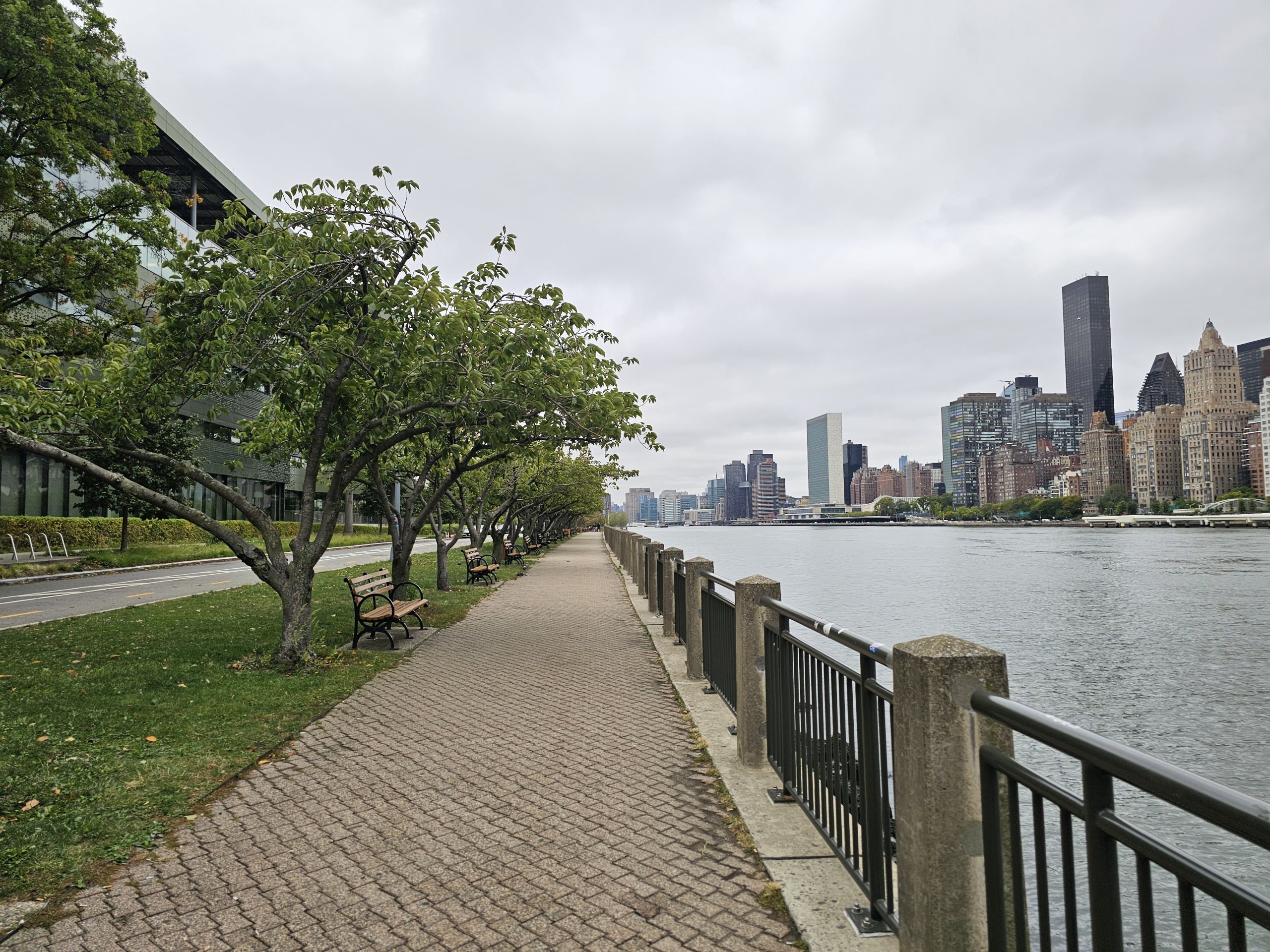 Roosevelt Island is an oasis of calm more or less in the middle of New York City, and there are beautiful long walking paths along both sides of the island, perfect for running.