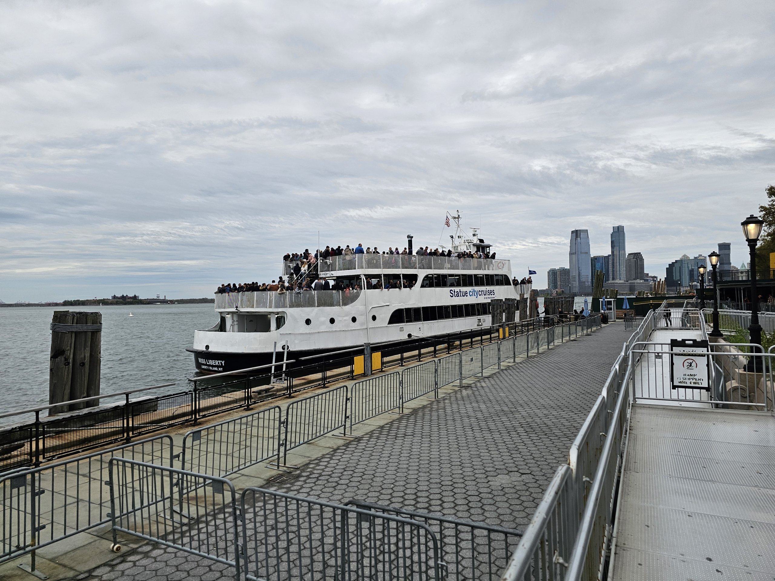 The sailing time from both Battery Park and Jersey City is approximately 15 minutes.
