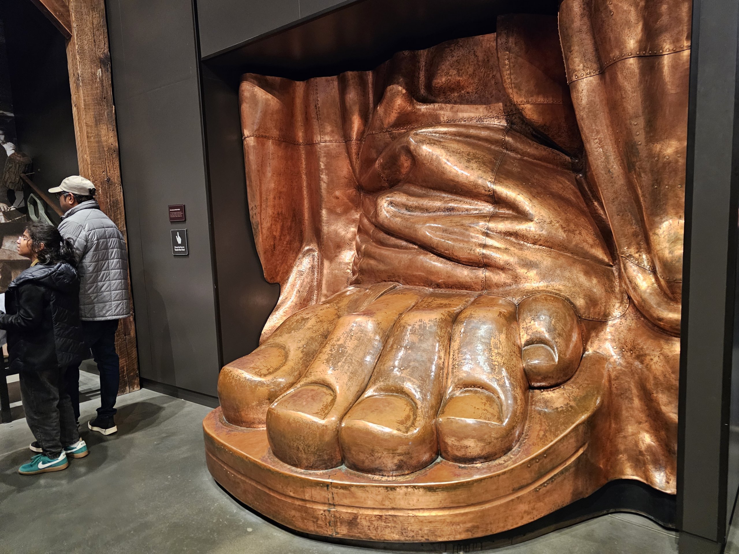 In a modern building near the wharf there is a gift shop, a café, a restaurant and another museum with models of parts of the statue such as the toes, the torch or the face.