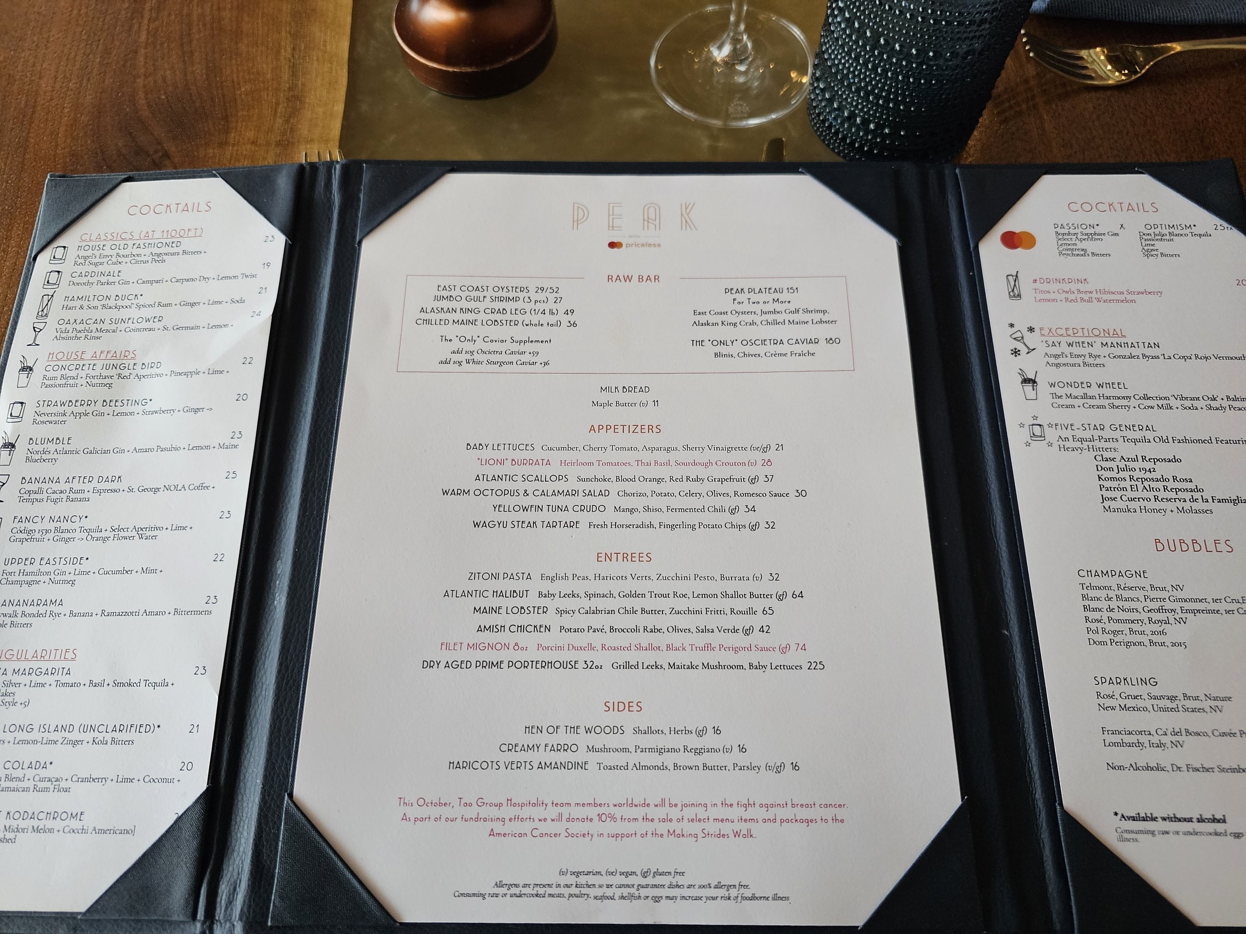 You can see the full menu on the restaurant's website: peaknyc.com/restaurant-bars.