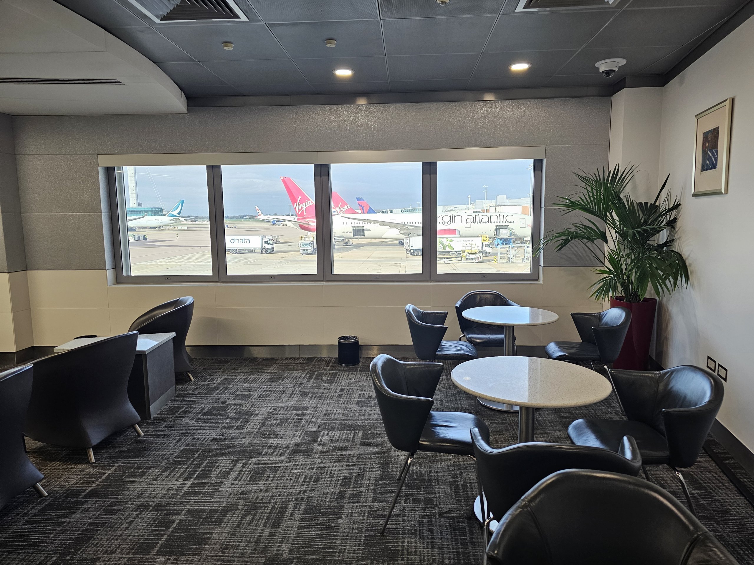 A great benefit is the great view of the airport tarmac - there are stands of large long-haul aircraft directly in front of the lounge, and you can also see the iconic Heahtrow Airport tower from here.