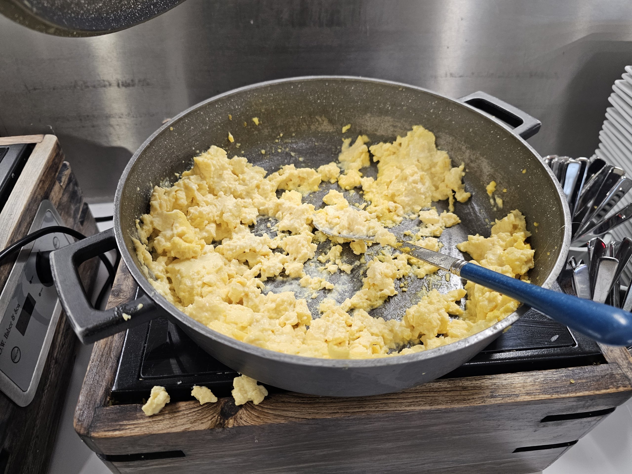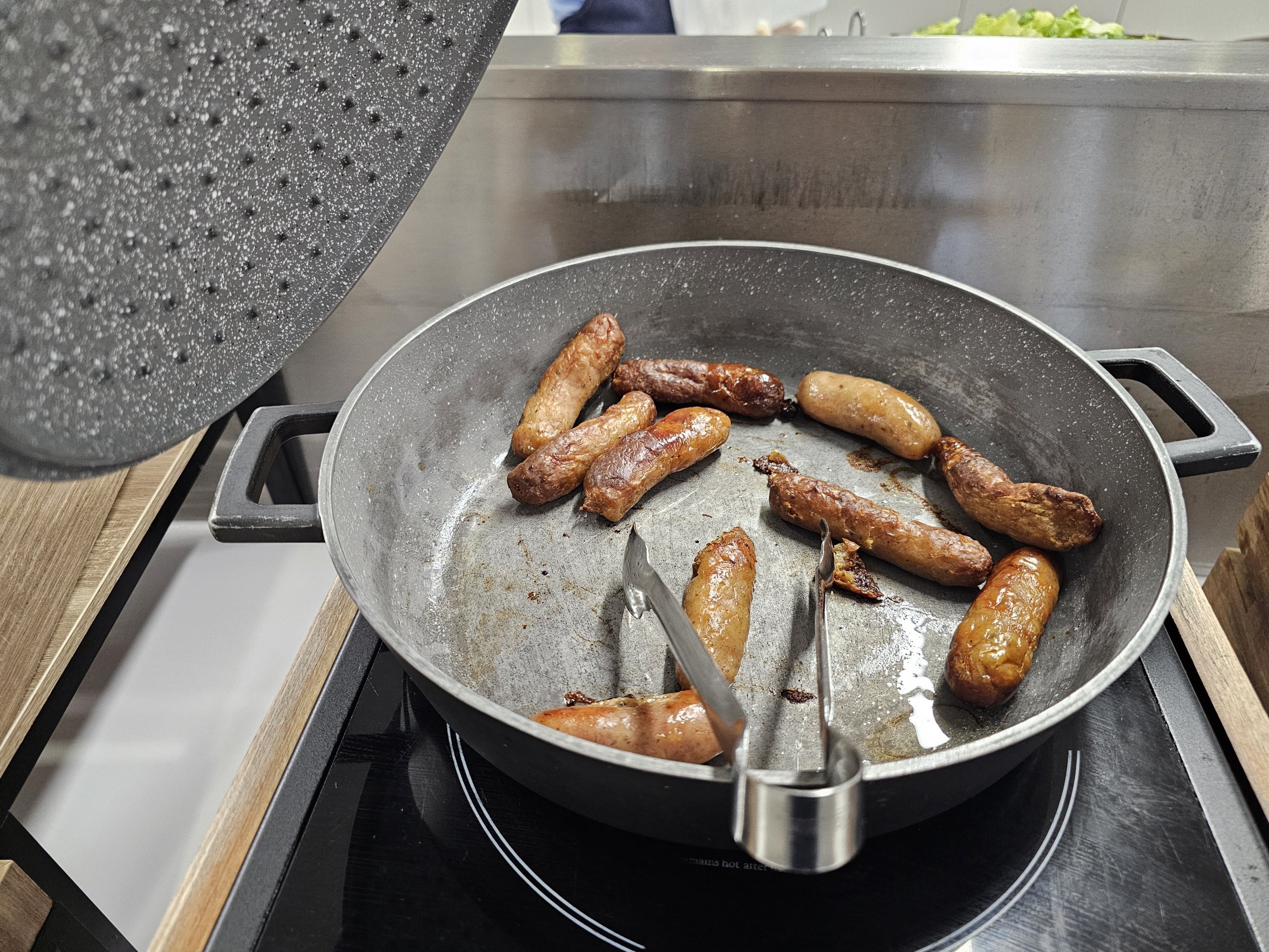 At breakfast, there is the classic trio of scrambled eggs, bacon and sausages. In addition, there are usually beans or tomatoes.
