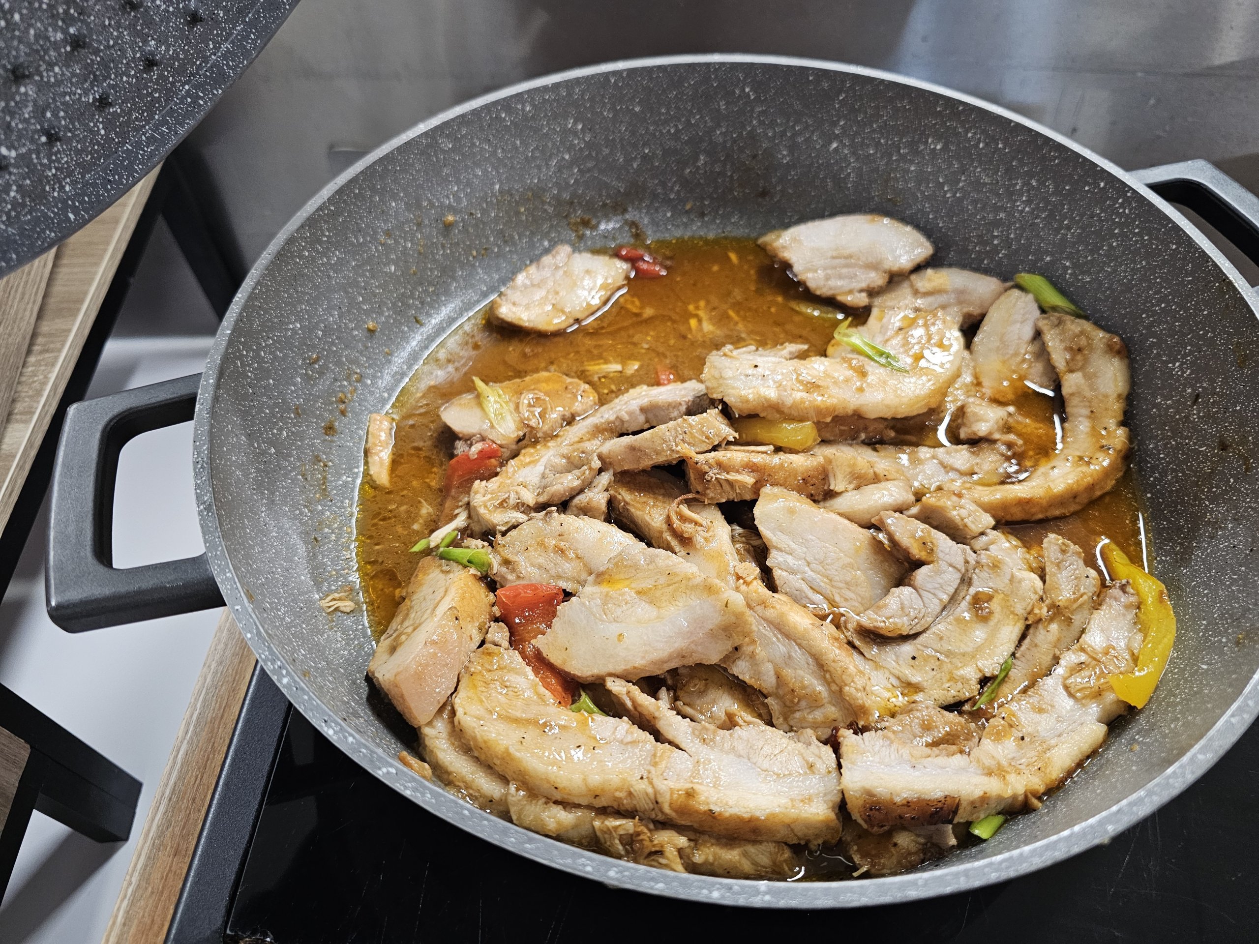 The lunch menu on the day of our visit included boiled potatoes, pasta with mushrooms and very fatty pork.