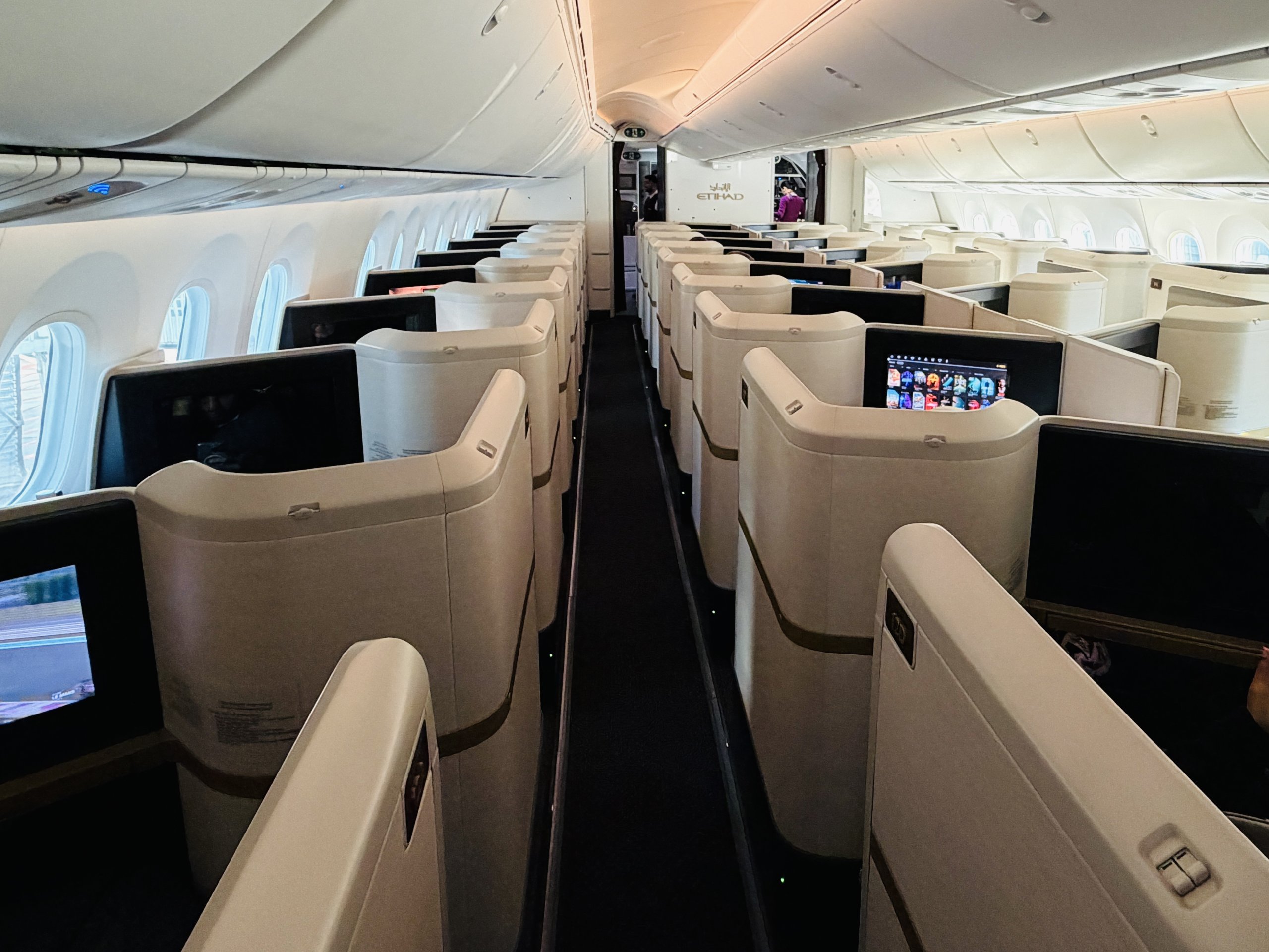 For me, the cabin is in an ideal 1-2-1 seating layout, with the added bonus of all seats being in the direction of flight compared to other Etihad B789s.