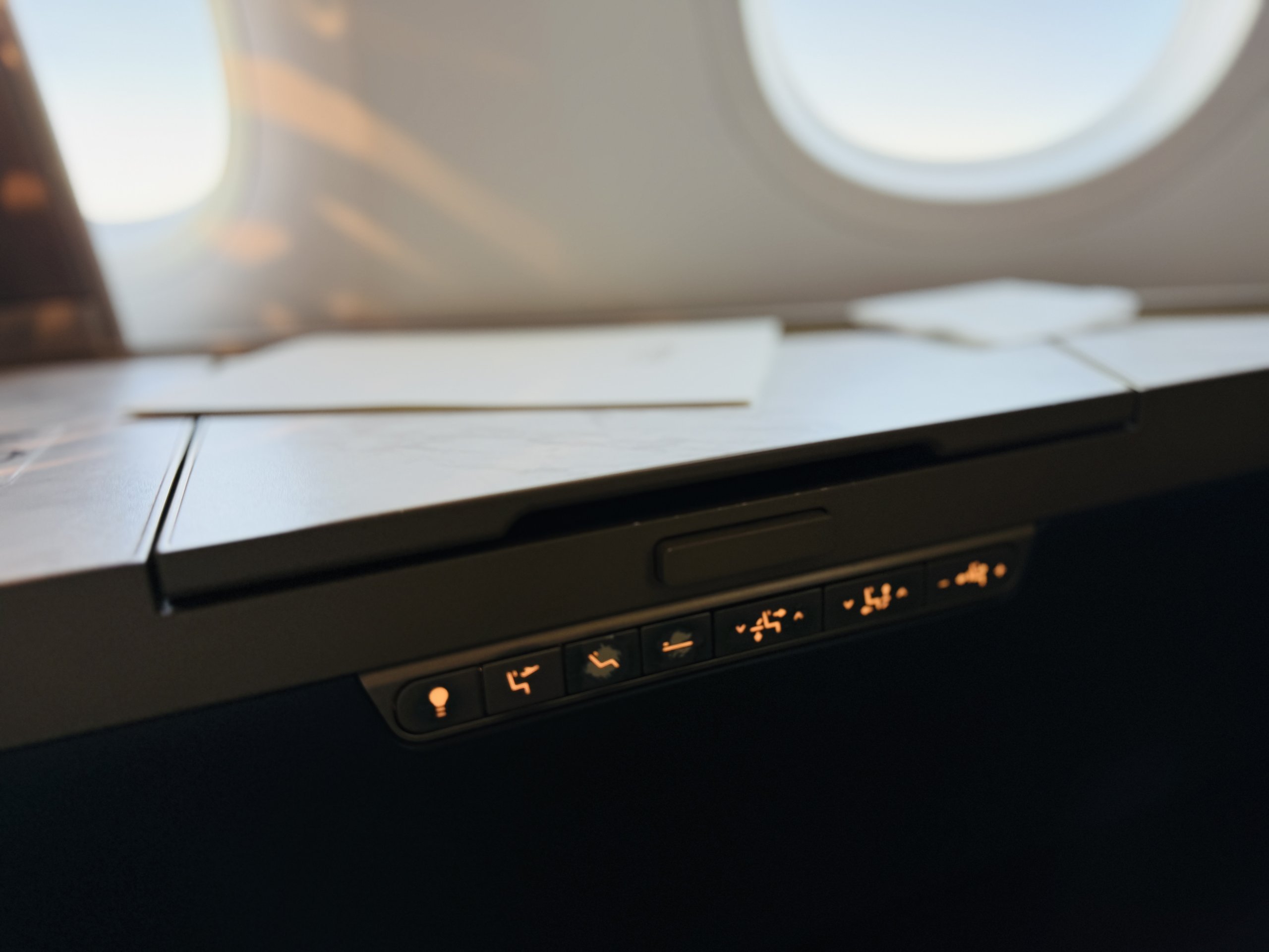 There are also storage compartments where you can find still water and full-sized headphones on boarding.