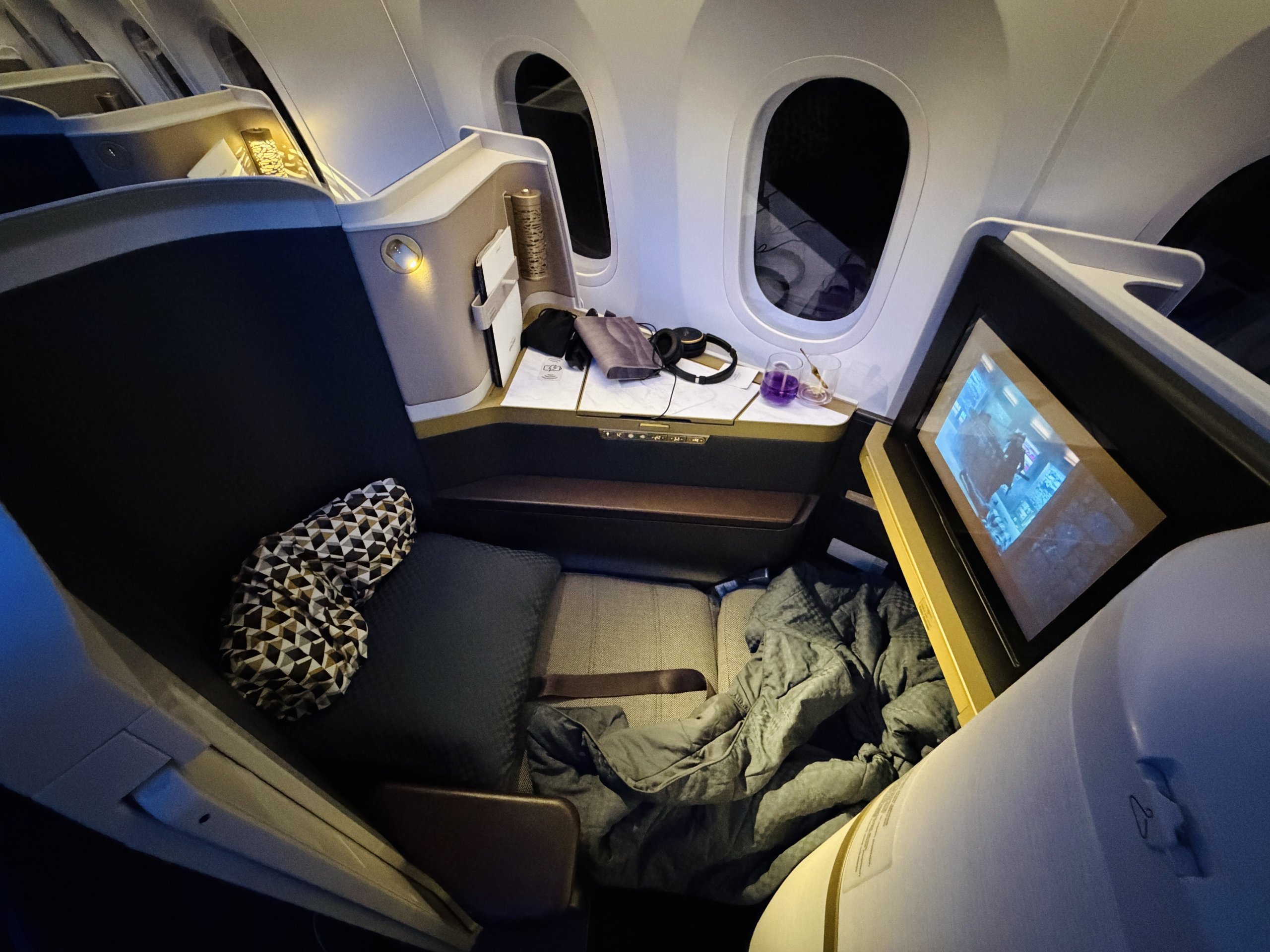 Etihad B787-9: review of the latest Business Class with doors (PRG-AUH)