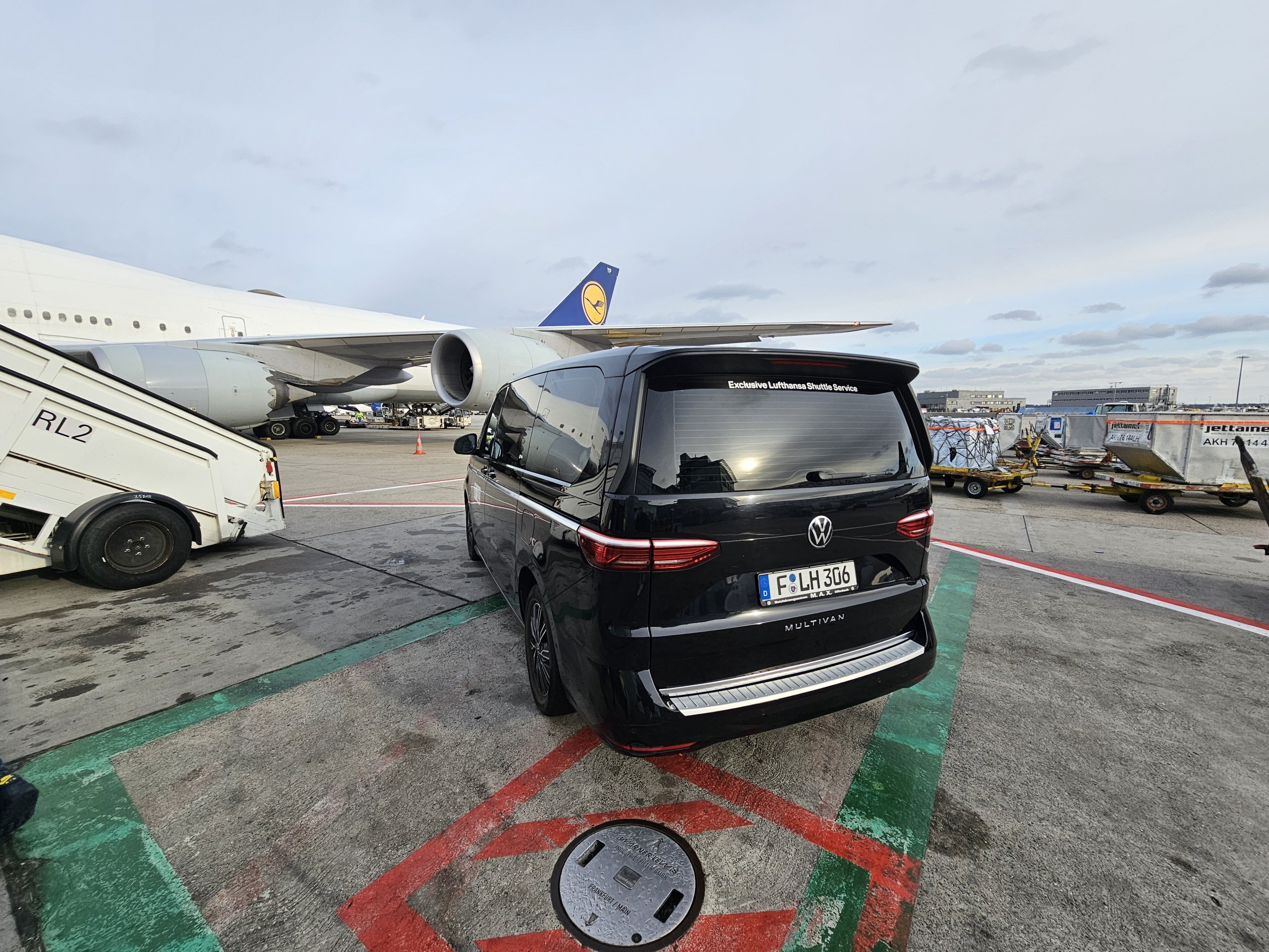 If there are more people, a van, otherwise a Porsche or BMW 7. If you have a transfer in FRA, the transfer is only in case of a bus gate, the same applies for the departure journey from the first class lounge A and B in FRA.