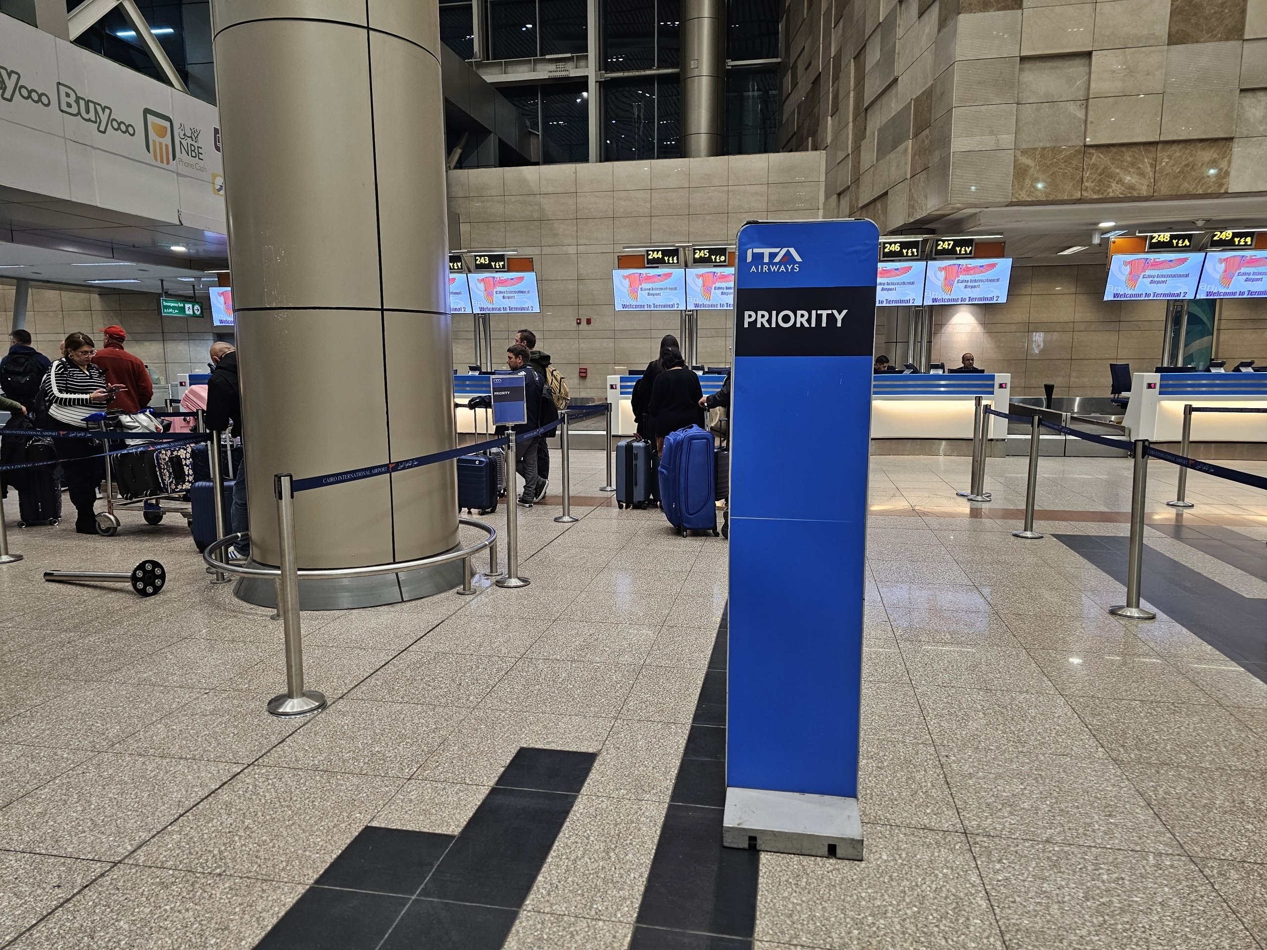 I check in at Cairo Airport, where ITA Airways has 5 dedicated check-in counters in Terminal 2.