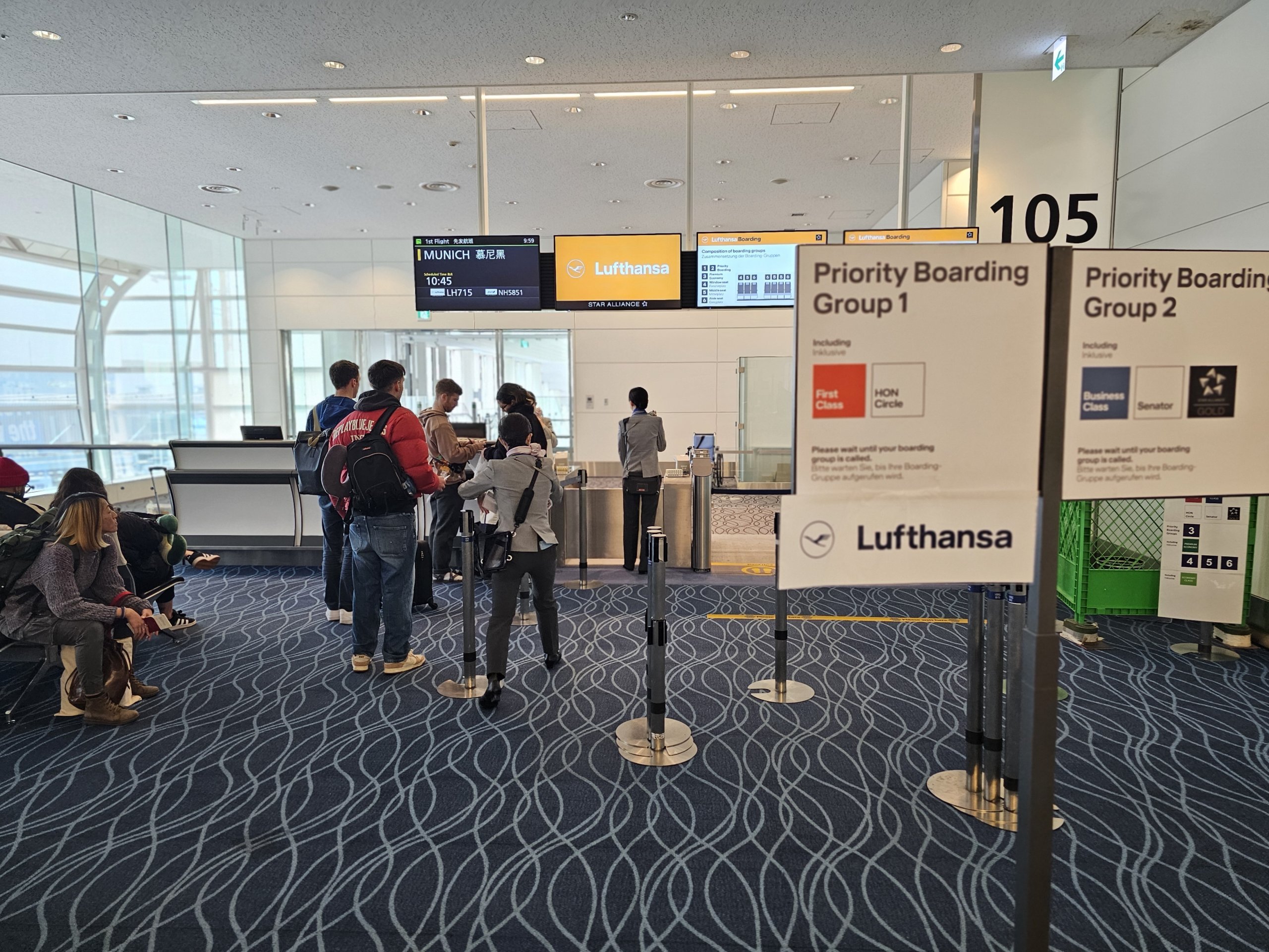 Since I have two large suitcases, I have to go to the check-in counter. Unfortunately, Lufthansa doesn't have automated counters at Haneda Airport, so I have to wait until check-in time to start.