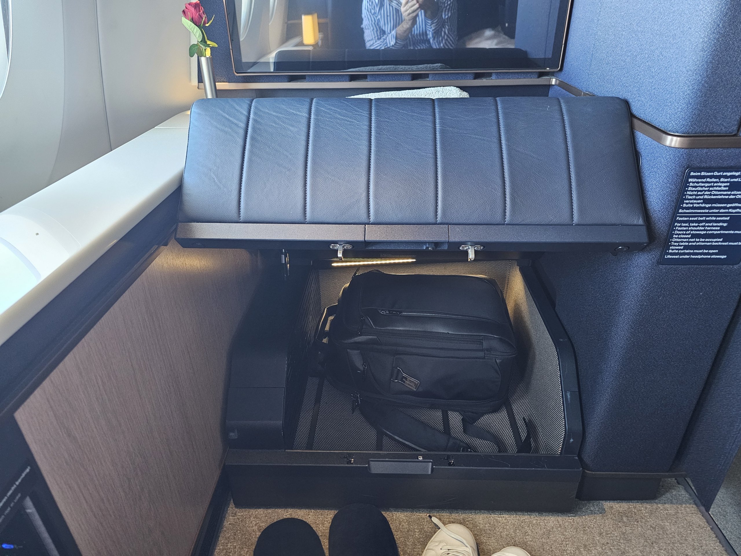 Compared to the seats in the old First Class, there is a little less storage space. Still a relatively sufficient amount, though.