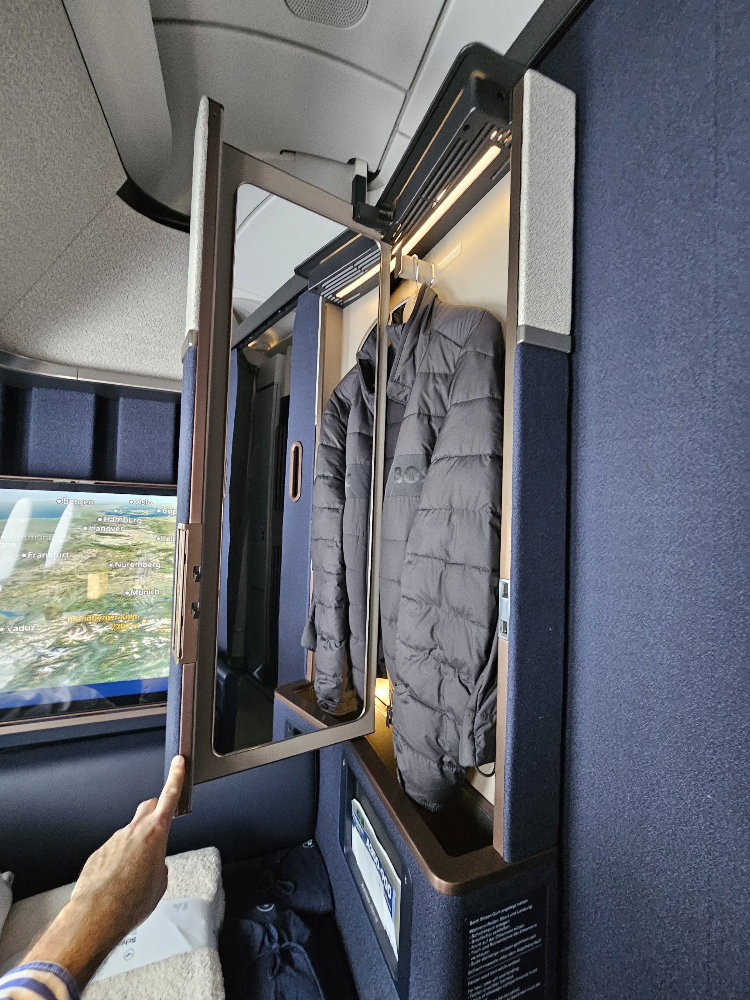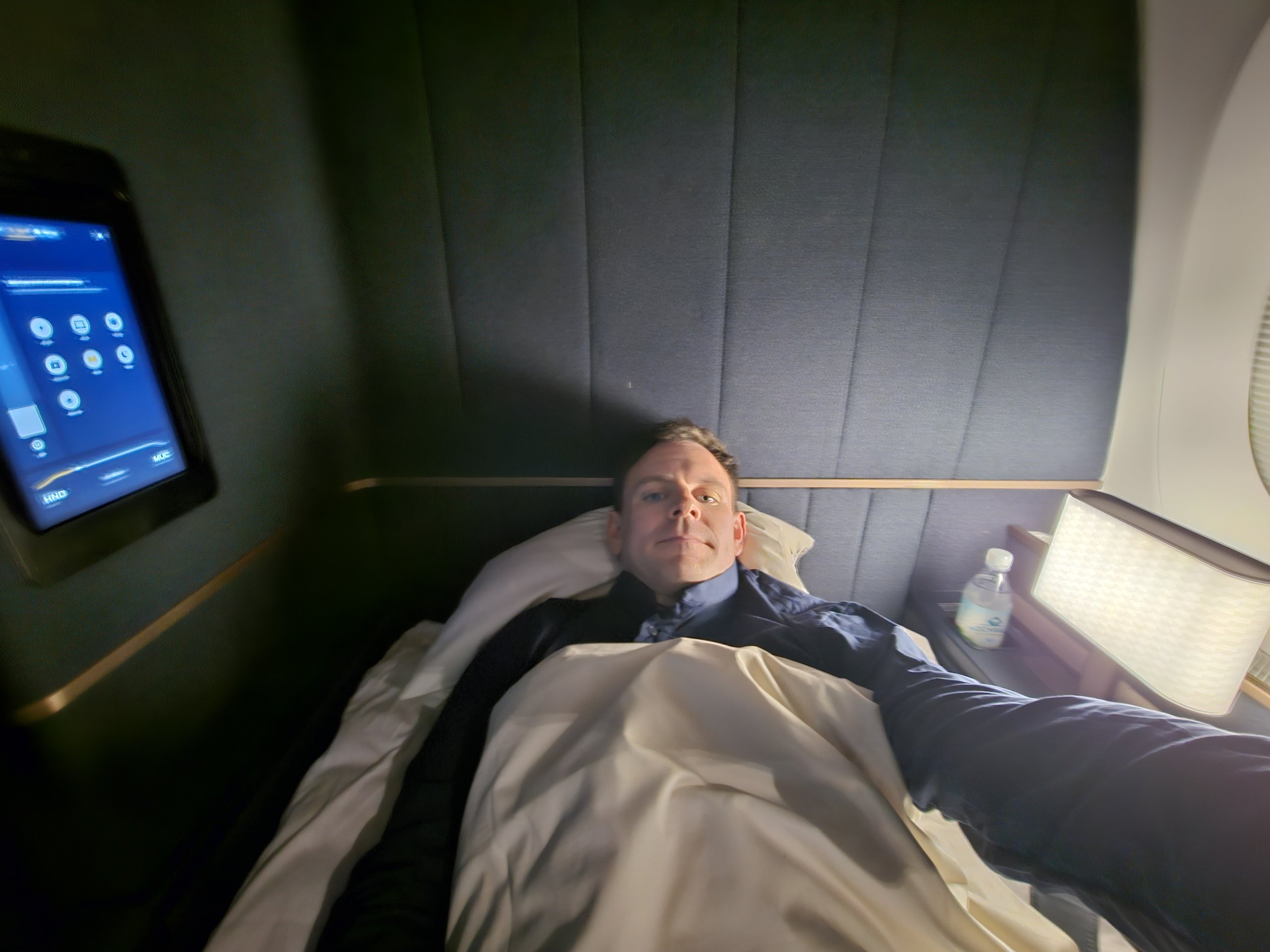 The design is rather austere in German, but for me very elegant! Sure, Air France's new La Premiere may be more hilarious in design, but again, it doesn't have a floor-to-ceiling door or screen, which is absolutely essential for me in First Class.