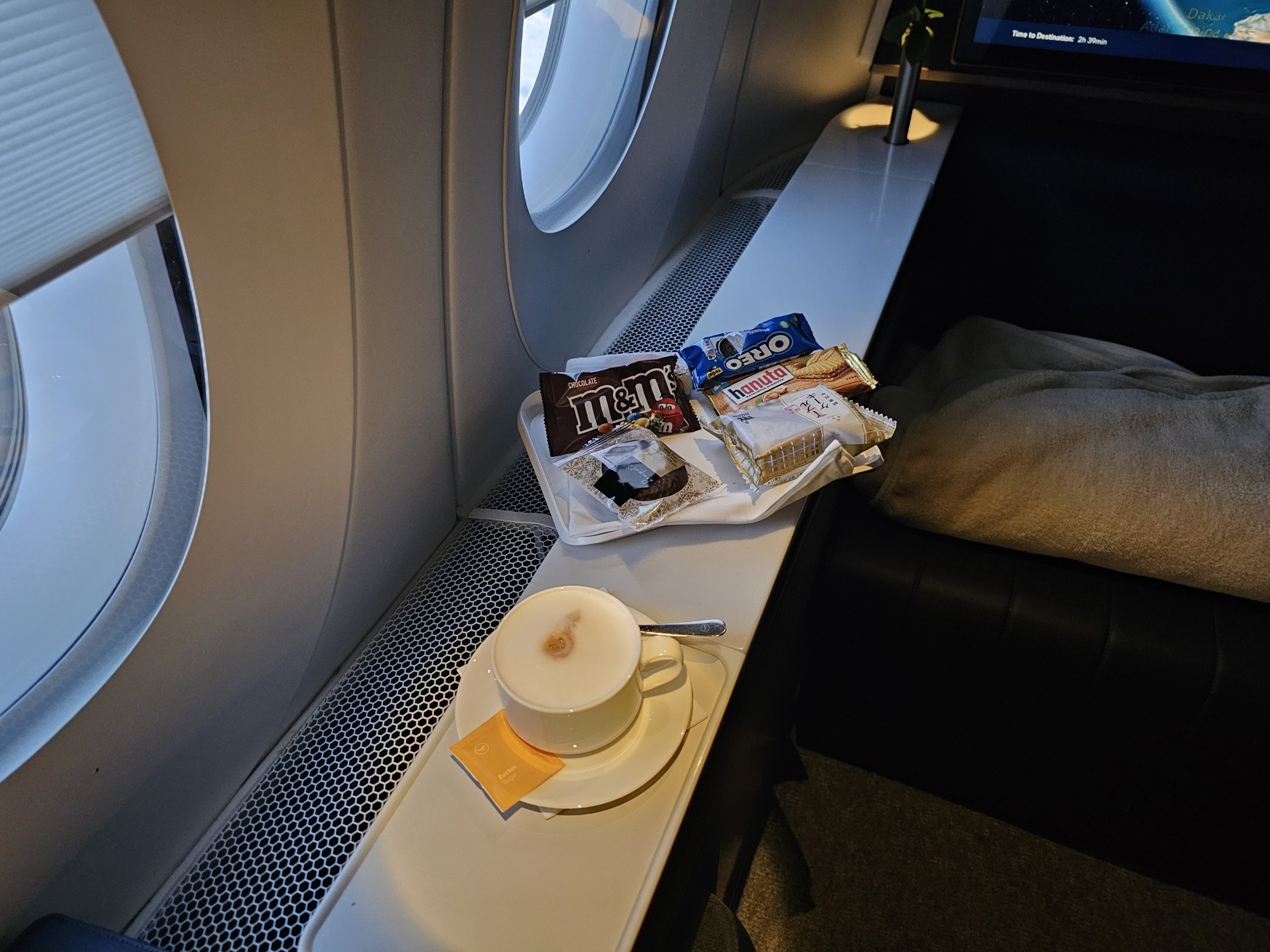 The breakfast food offerings are a little weak, but that's fine with me because I already know from flying from Frankfurt to Japan that the First Class service on Lufthansa is more than adequate.