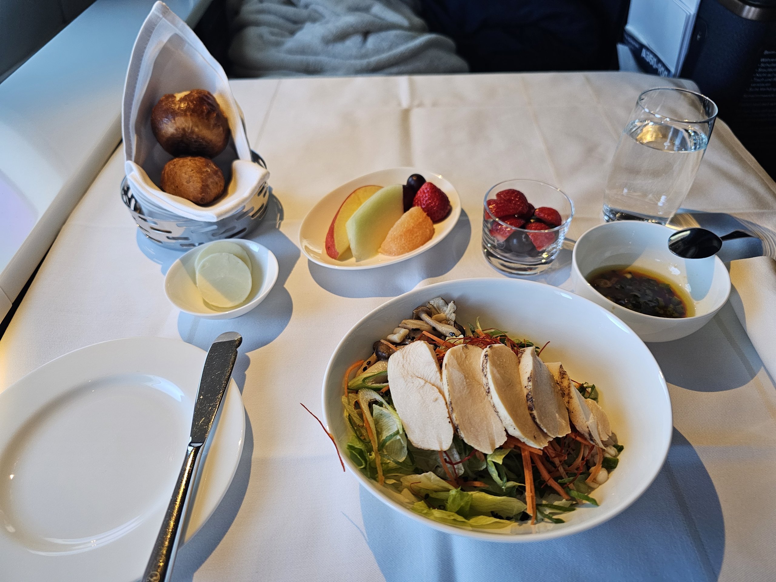 I flew there in the old product in a Boeing 747-8 and back in the brand new Allegris First Class in an Airbus A350-900.