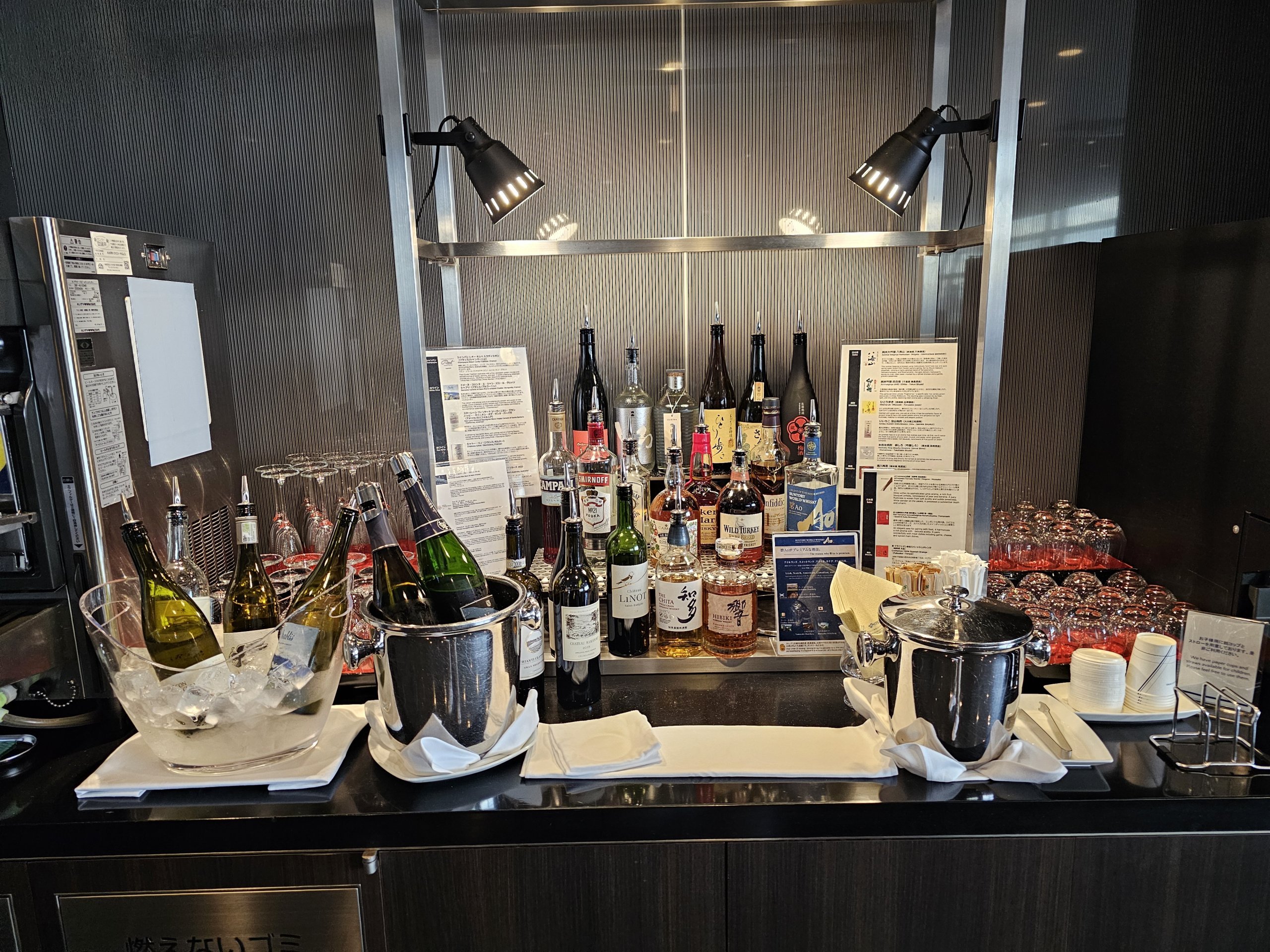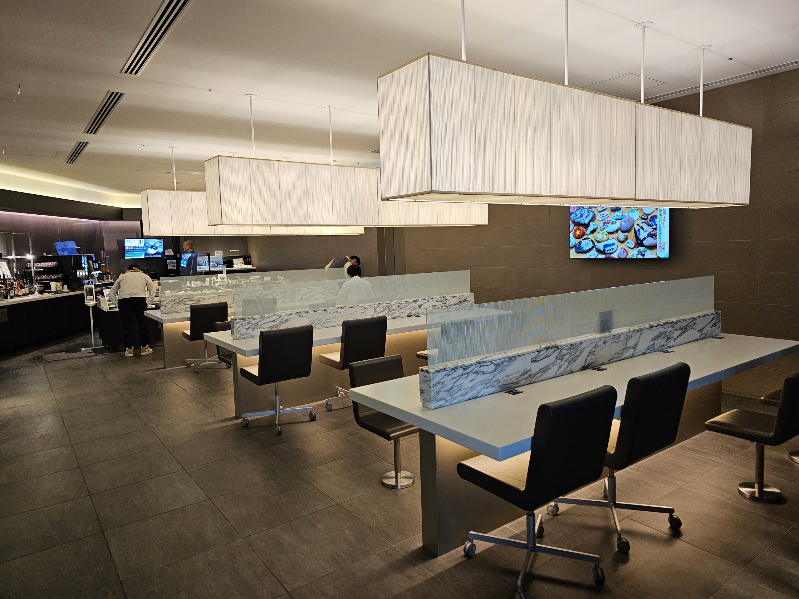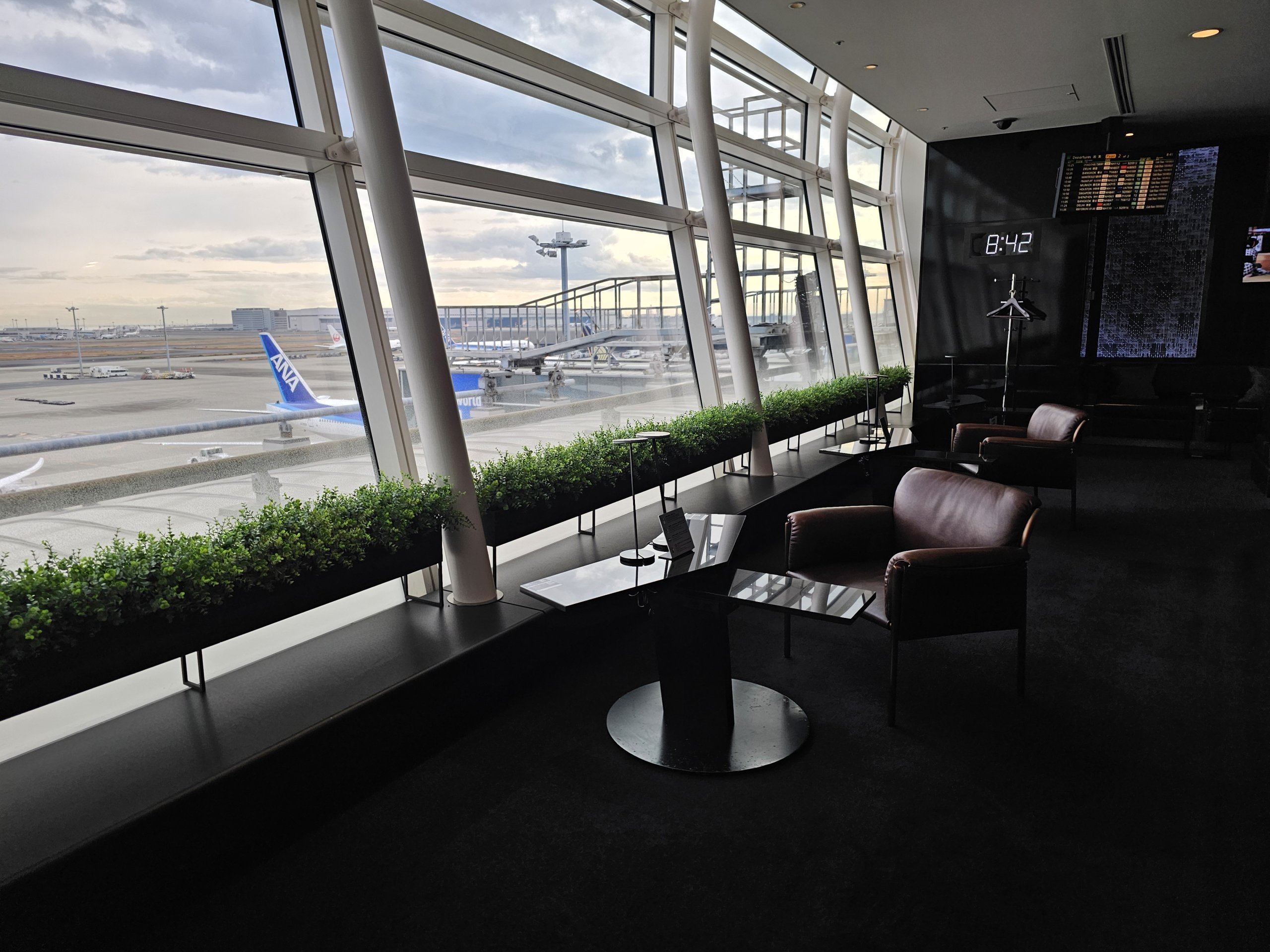 The lounge is very spacious with a great view of the tarmac and plenty of cubicles that mimic the first class seats on ANA Japan Airlines.