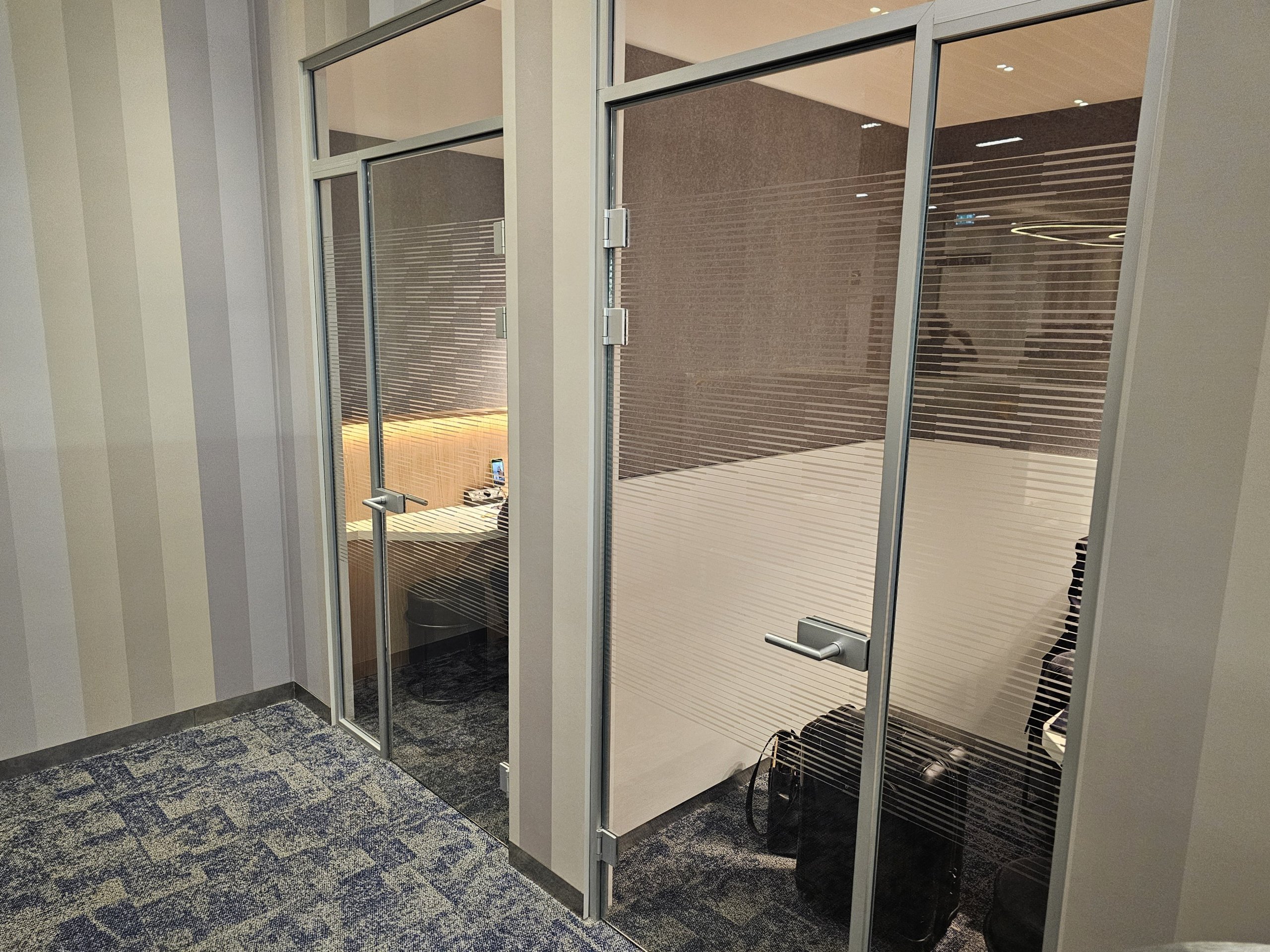 For uninterrupted phone calls, there is a special soundproof booth at the entrance designed just for these cases.