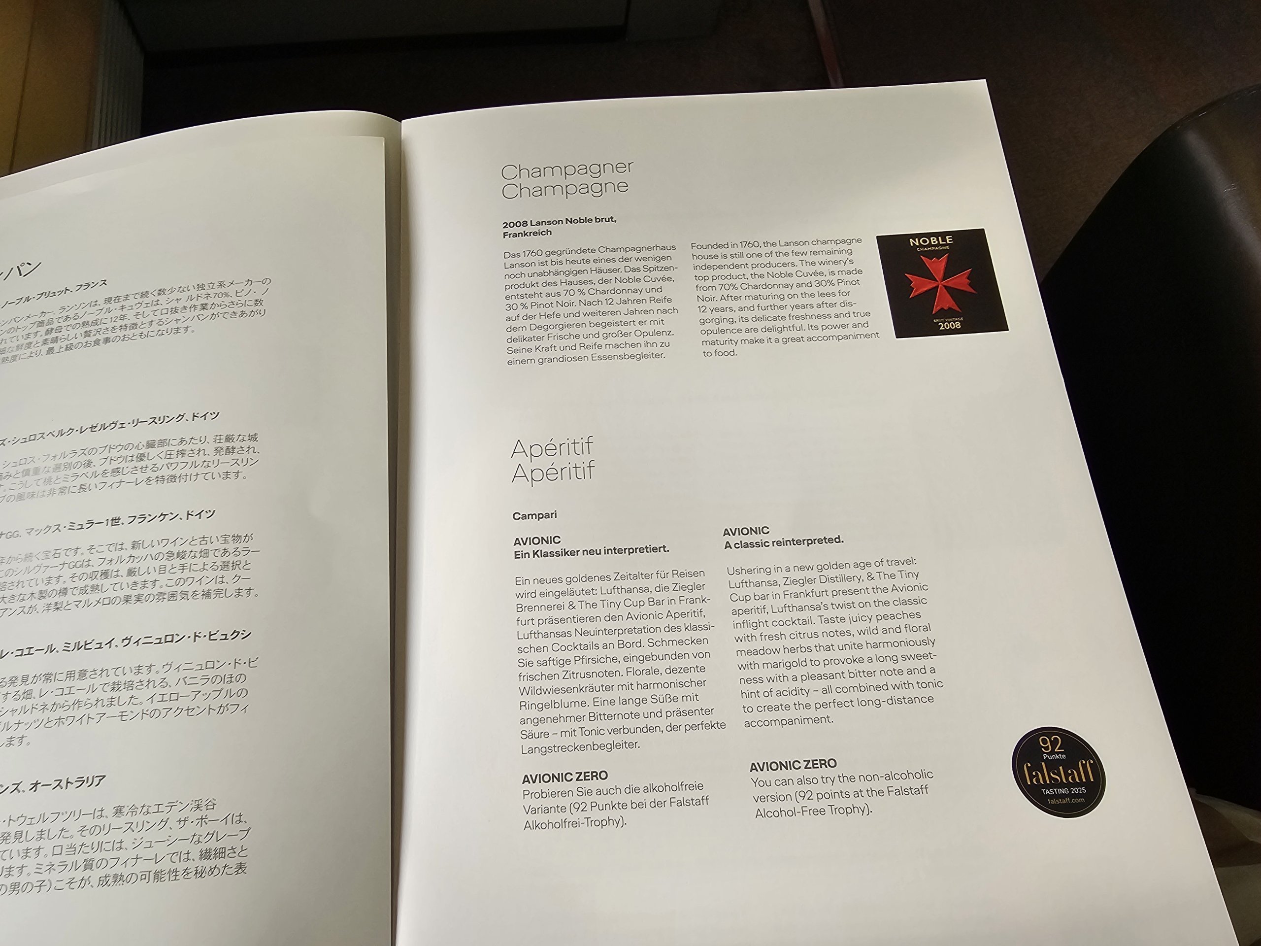 Before the main meal I have my favourite Lufthansa signature cocktail - the Avionic.