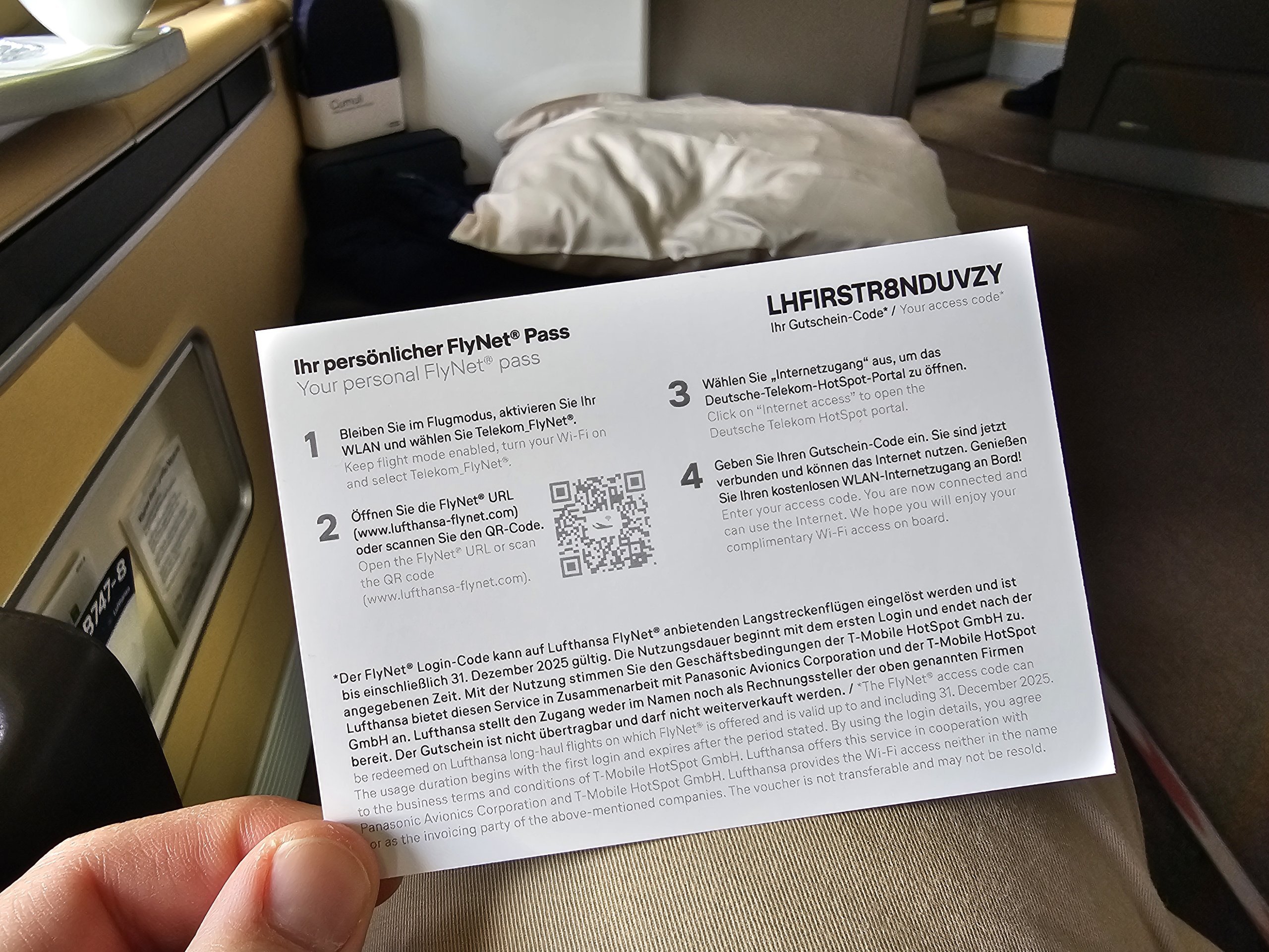 Before take-off you will always receive a card with a code which you enter when you log in to Fly Net.