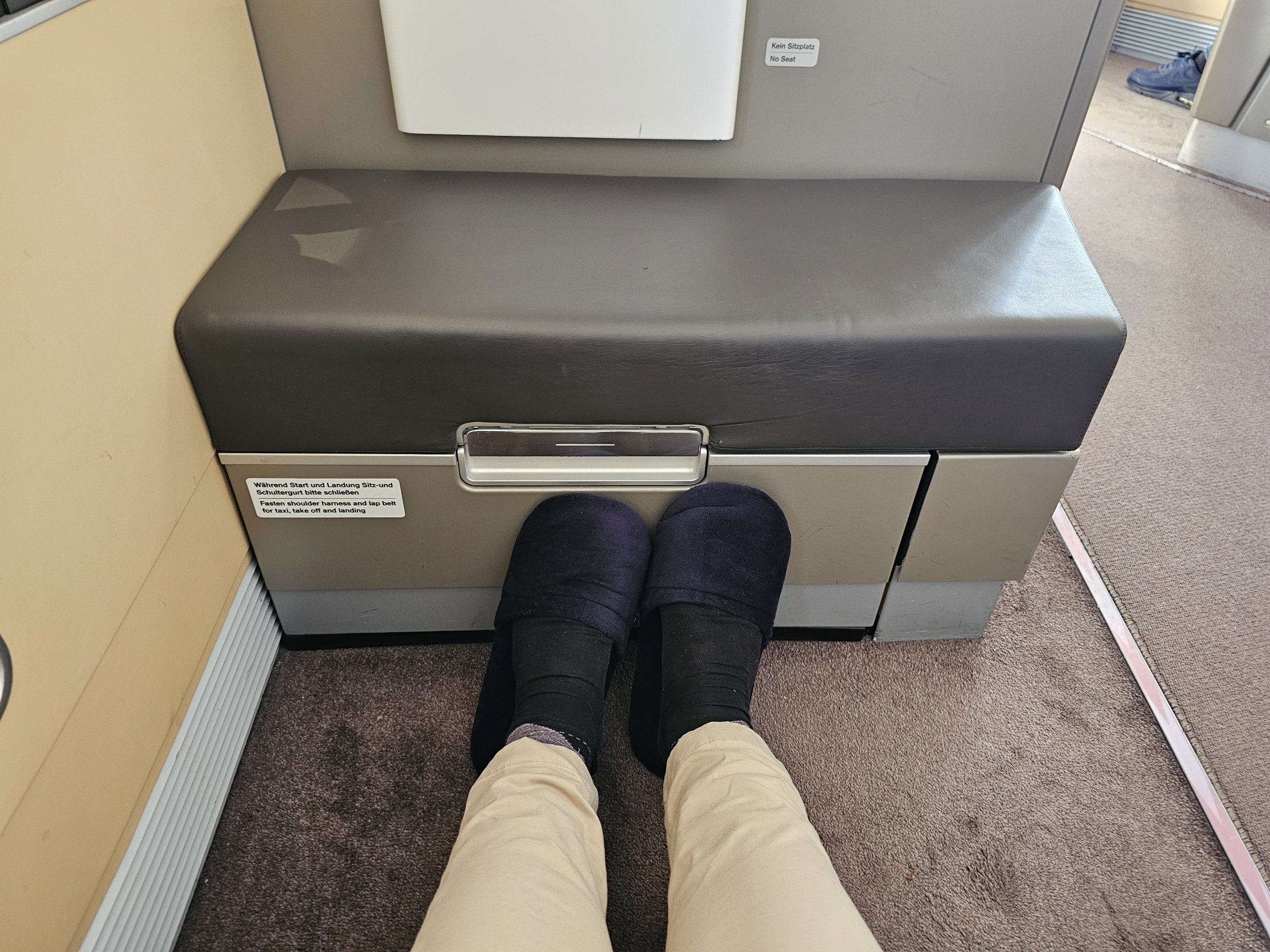 The biggest drawback of the seat, however, is the lack of a door, curtain, or anything that completely separates me from the surrounding cabin.