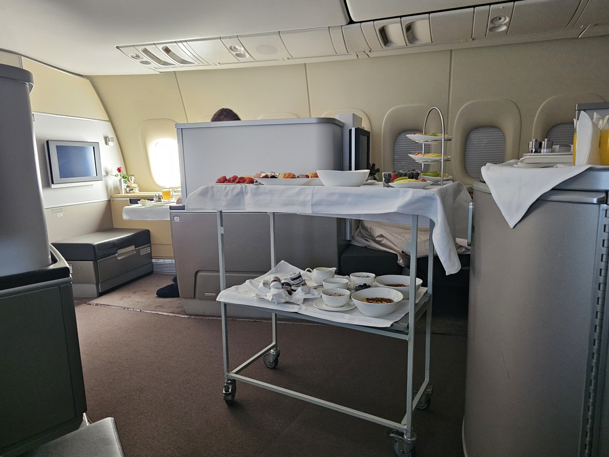 In retrospect, however, I regret this choice a bit. While seats 2A and 2K are the furthest away from all the others, they are right next to the counter used by the crew for service.