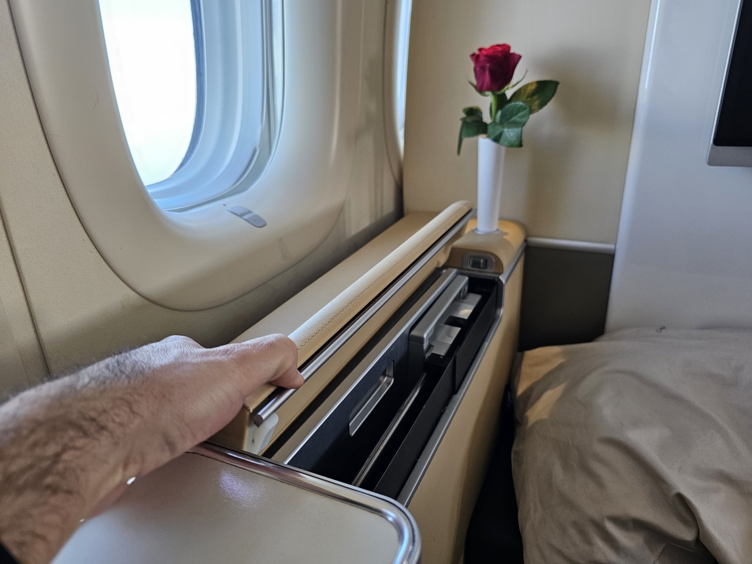 I really appreciate the huge amount of storage space, which is incomparably larger than the new Allegris First Class in the Airbus A350.