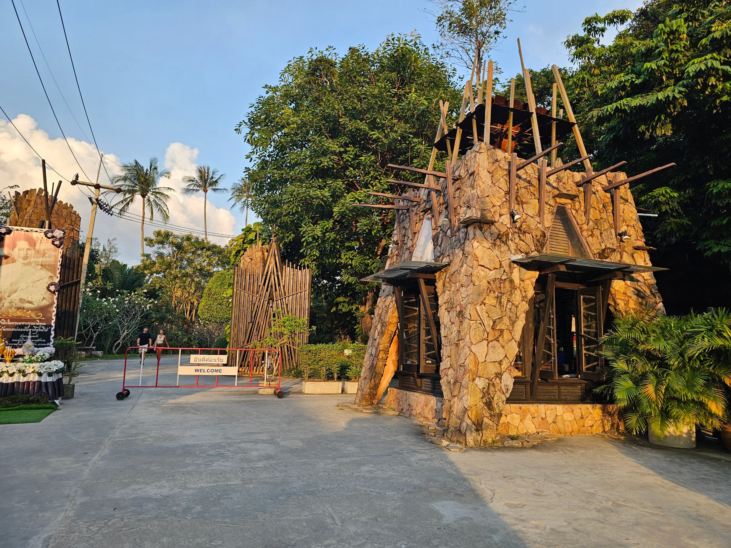 Parking for cars is free down by the entrance gate. You can take a scooter to the reception, which is roughly in the middle of the whole area.
