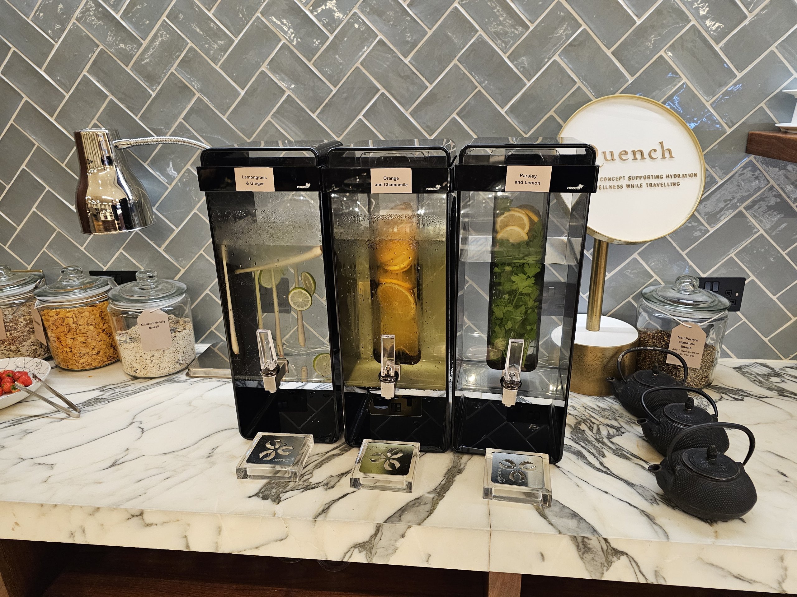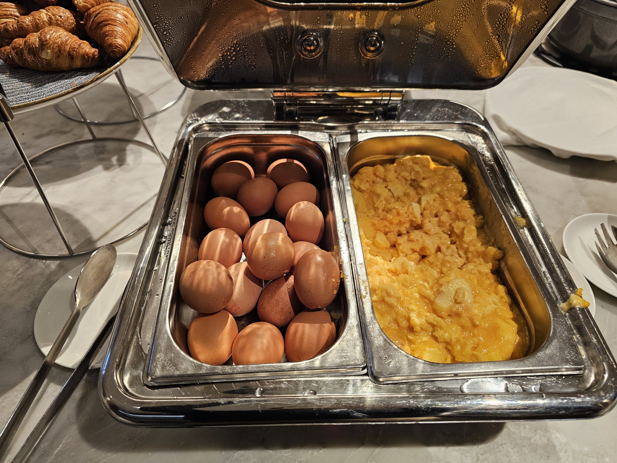 However, there is a complete lack of counters with other sweets or perhaps cheese or ham. Overall, the food offer is not as extensive as, say, the Cathay Pacific Lounge next door.
