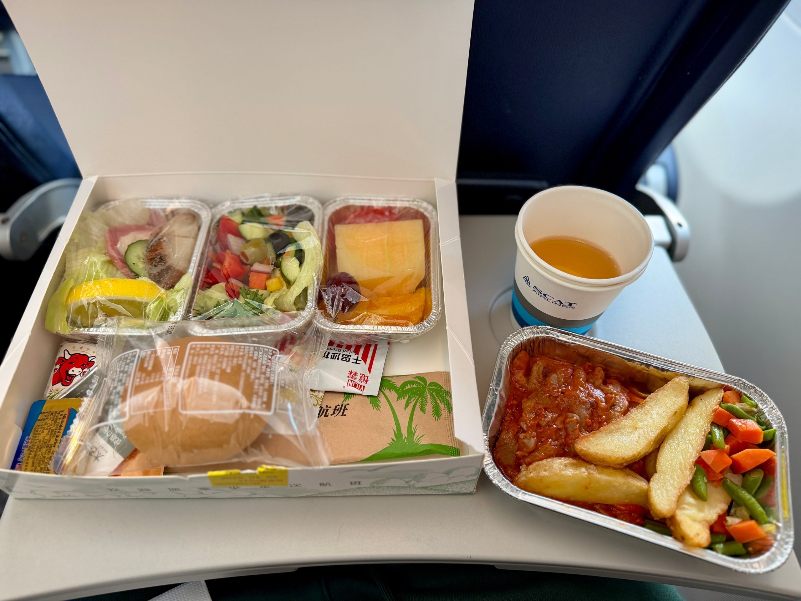 Departure was in the late afternoon from Prague with landing shortly before noon in China. So the menu for dinner was satisfactory, only for breakfast I was expecting something other than chicken or beef again.