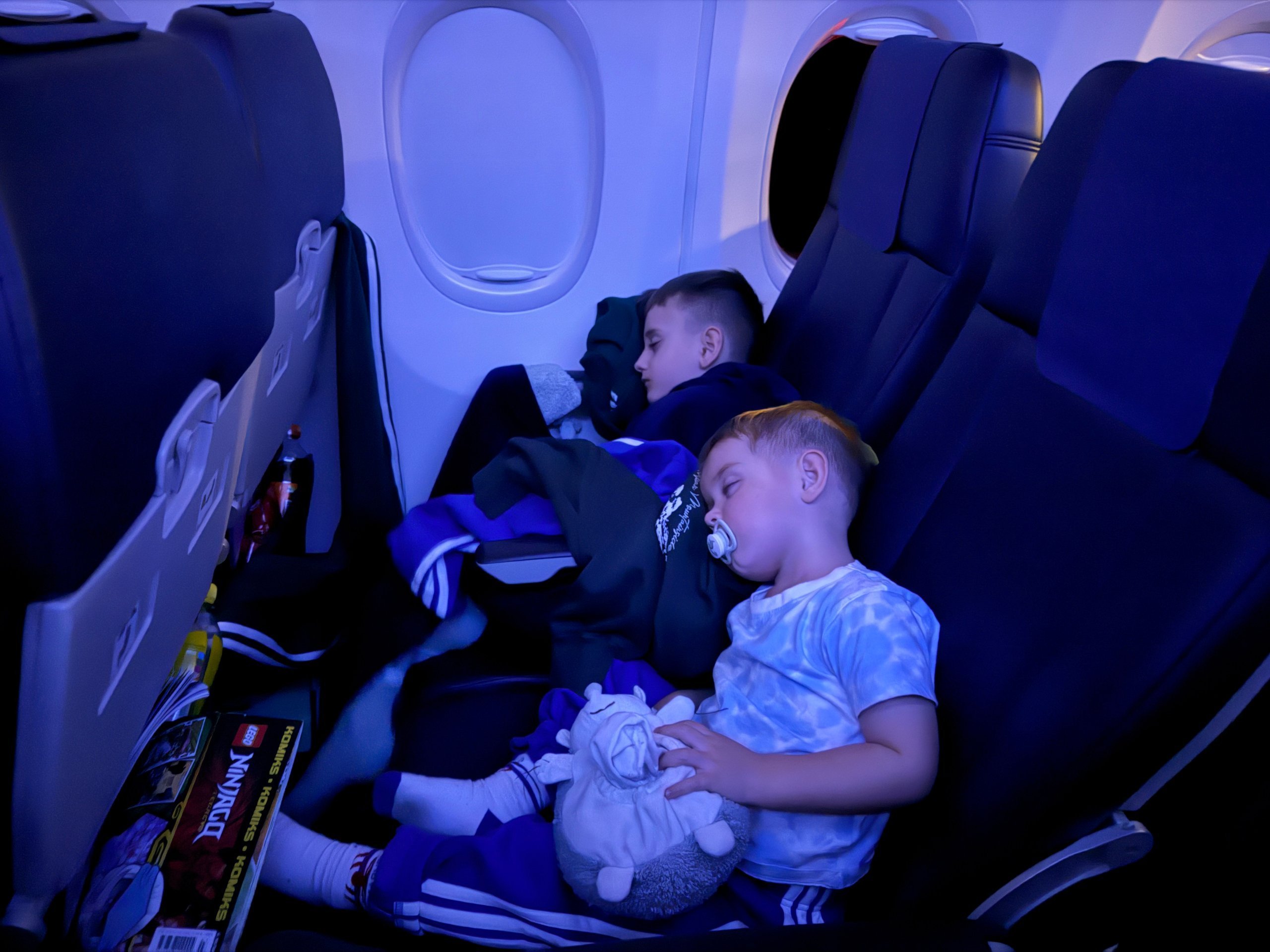 Sleep eventually makes the whole flight go by so much faster that even our kids reach their destination without getting extremely bored.