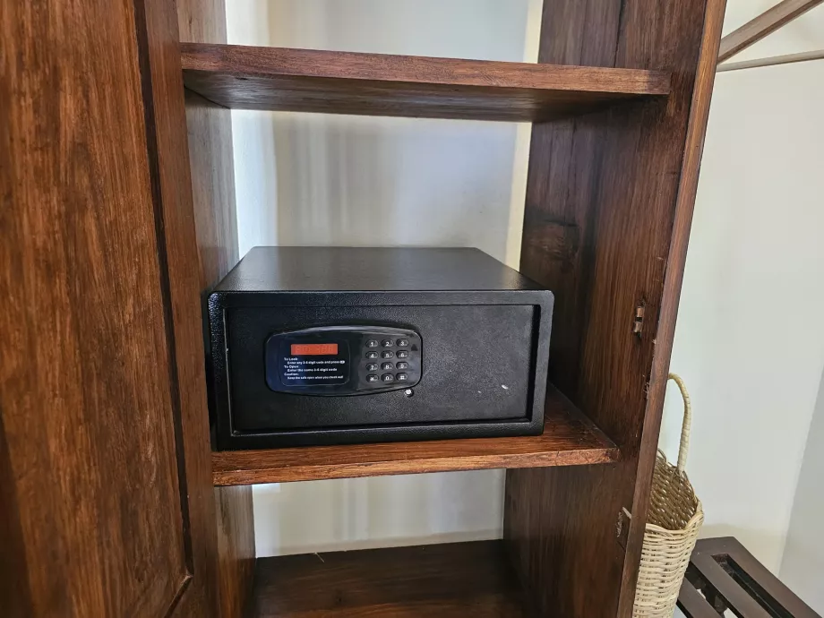 Also in the room you will find a safe, beach towel, kettle, instant coffee and tea.