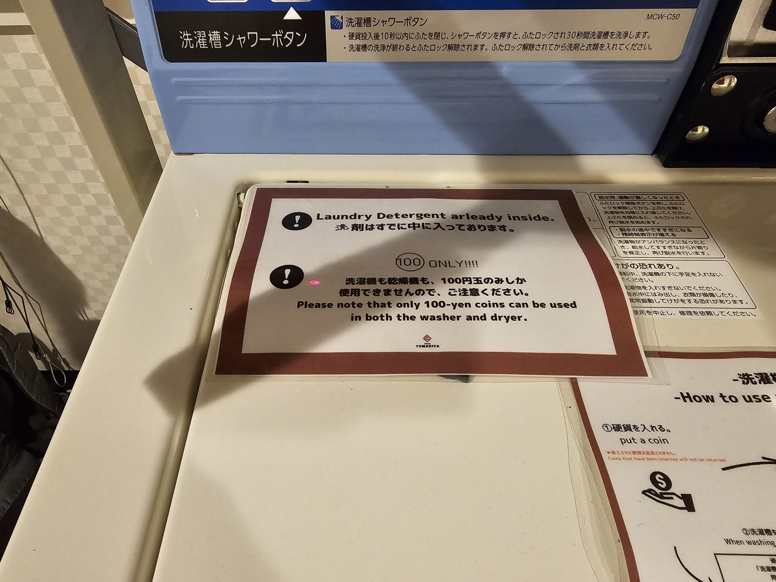 - washing machine and tumble dryer (300 jpy - can only be paid for with 100 yen coins)