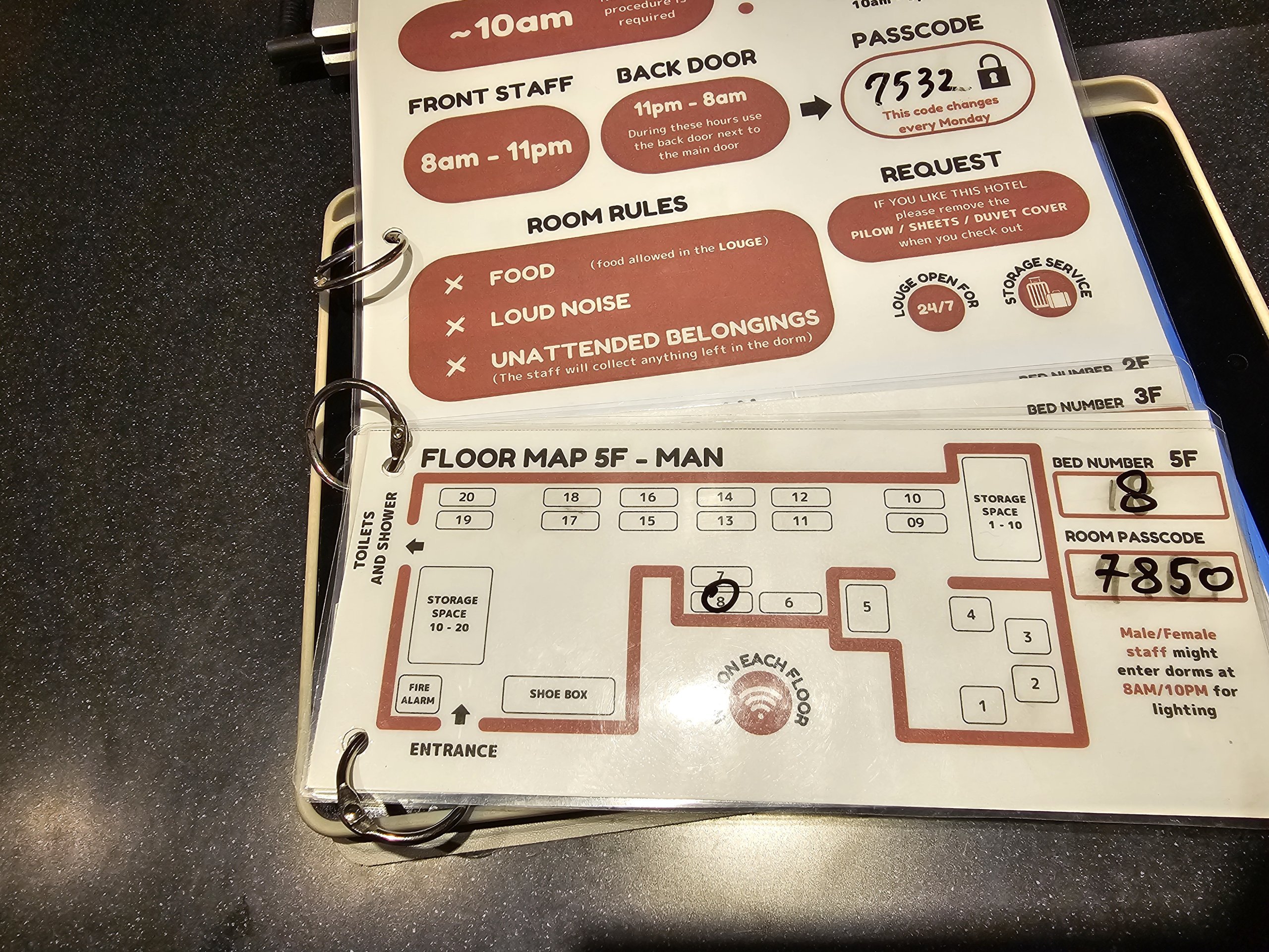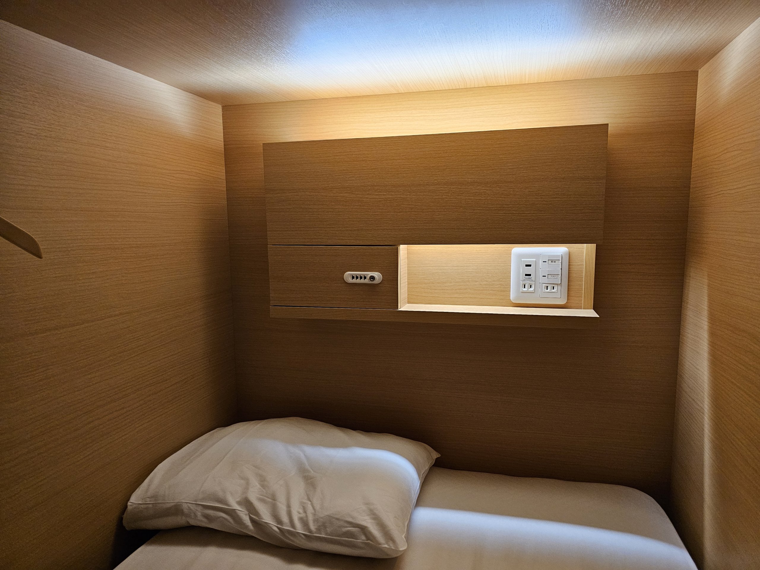 I have capsule number 8, which is the top bunk. I don't mind it, but if you don't like to climb ladders, I recommend that when you book through booking.com you write in your request that you want the bottom capsule.