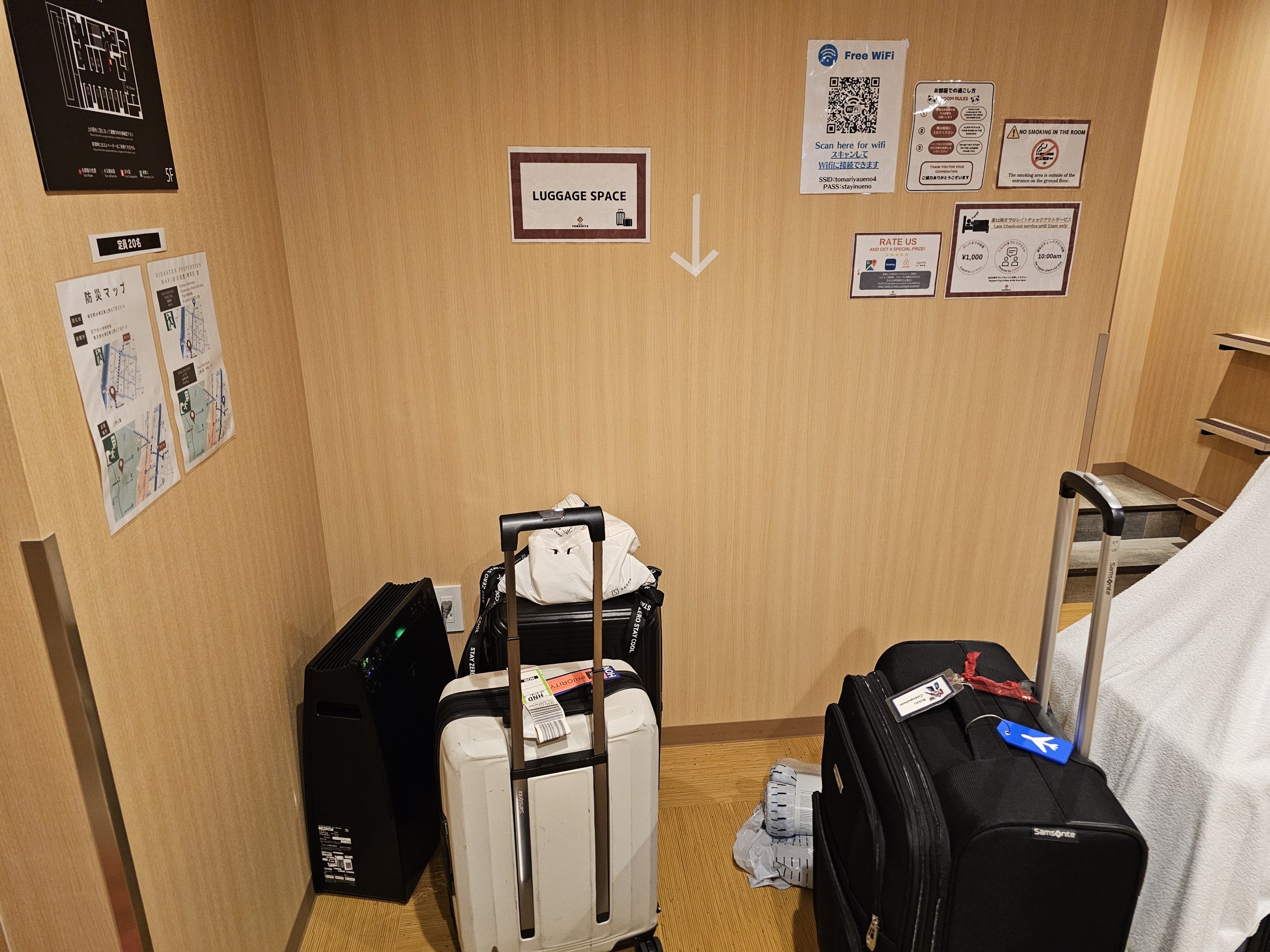 Check-in isn't until 3pm. I don't expect any extra services from a capsule hotel for free, which makes it all the more pleasantly surprising to be able to store my luggage for free.